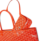 The Saint Louis GM bag is made from Goyardine and is unlined. It is extremely light and completely reversible. Wear it showing the Goyardine fabric or inside out, showing the linen and cotton mix. Its two leather handles with their progressive thickness mean it can be worn in different ways. It has a removable inside pocket attached to one of the handles for quick and easy access.