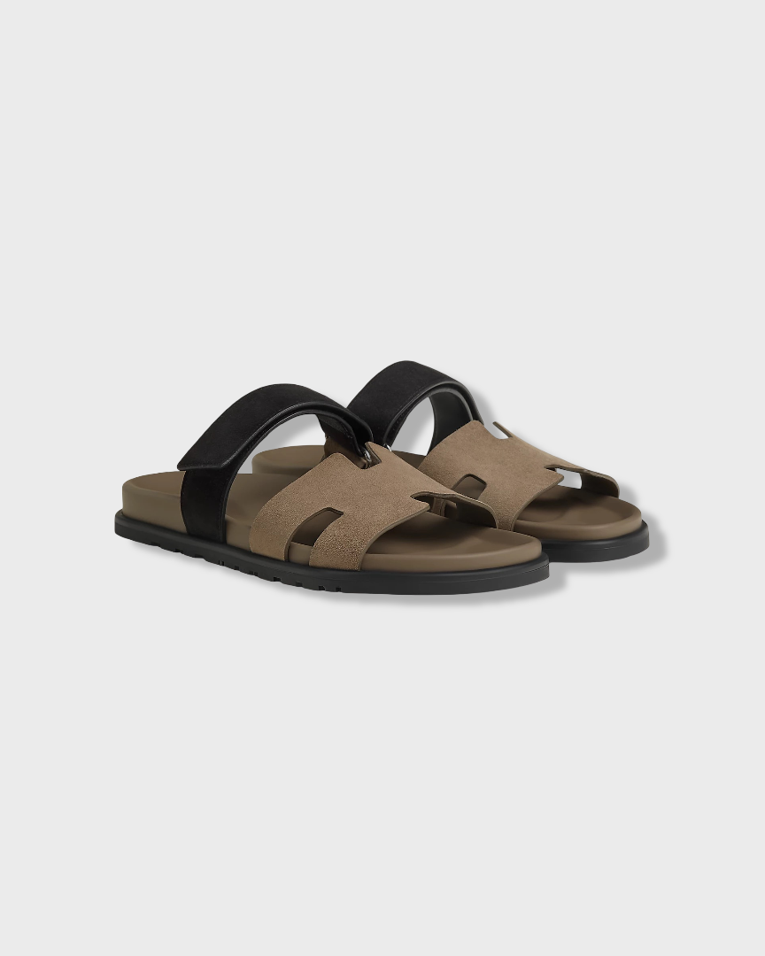 Hermes Chypre Sandal Suede Étoupe / Noir