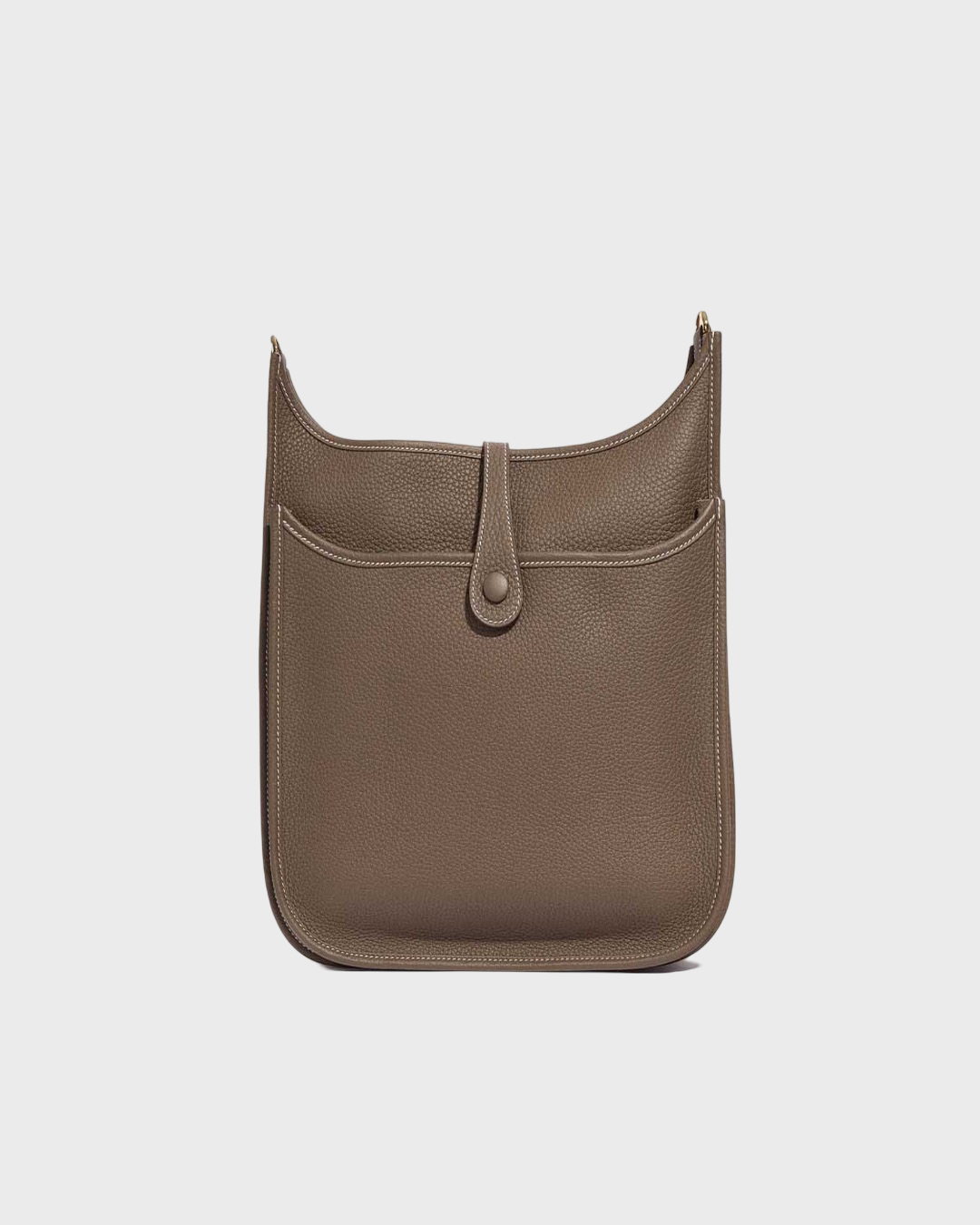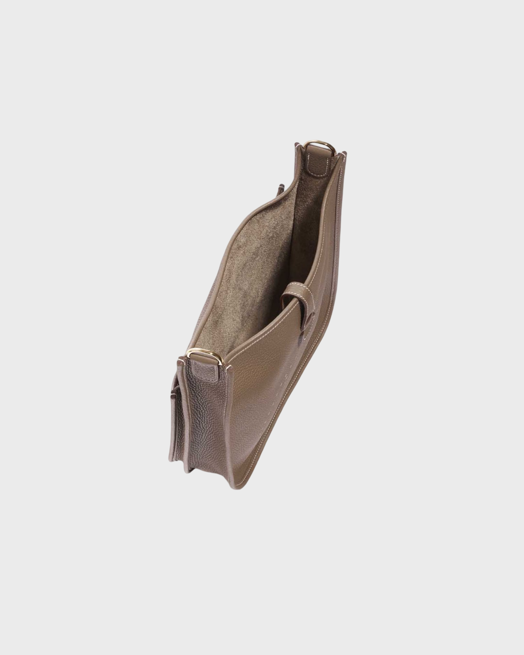The Hermès Evelyne III GM in Etoupe Clemence leather with Gold Hardware is a sophisticated and functional shoulder bag, epitomizing Hermès' dedication to craftsmanship and timeless design.