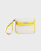 The Hermès Kelly Dépêches in Ecru and Lime Canvas is a chic and functional accessory that combines timeless sophistication with a fresh, modern twist. Designed as a refined business or travel companion, this bag is crafted from durable canvas in a neutral Ecru base complemented by vibrant Lime accents, creating a striking yet elegant contrast.