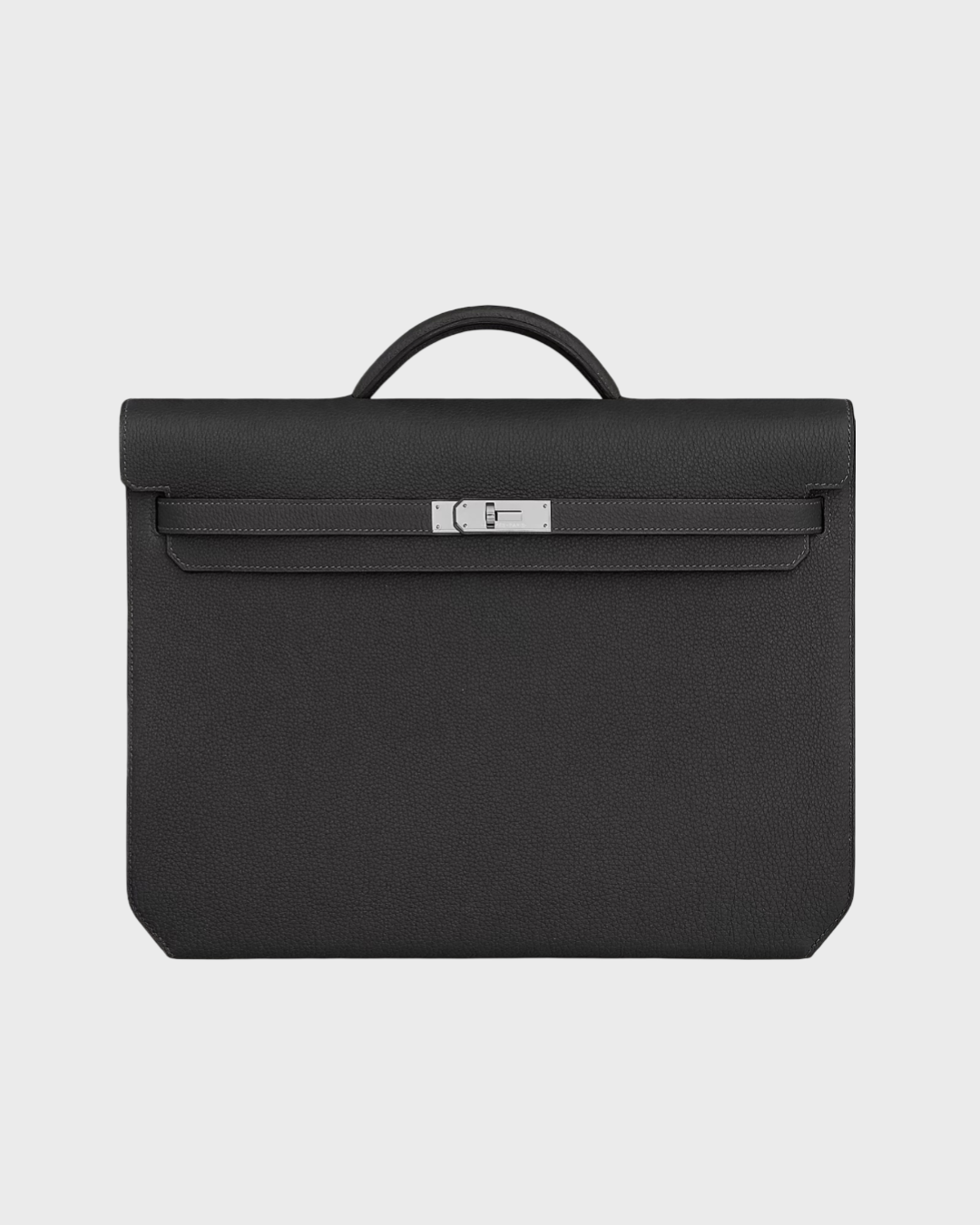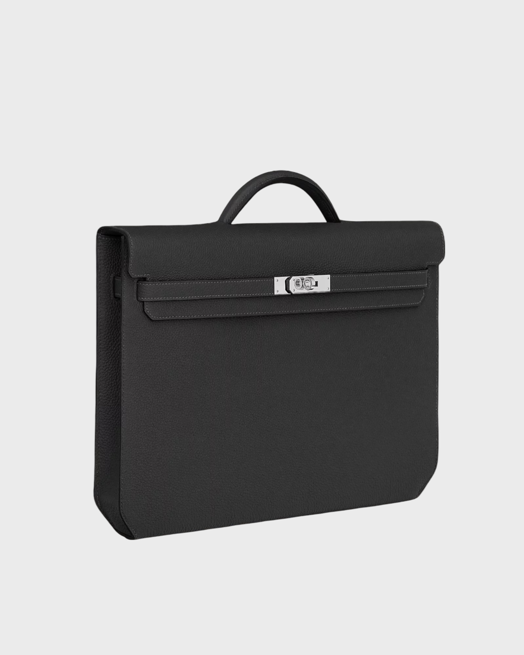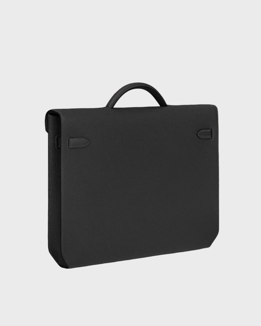 With its new clean lines, the Kelly Dépêches document holder combines Kelly's iconic clasp with beveled corners and the construction codes of the Hermes menswear universe. With its rounded bottom and the purity of its leather surface, it asserts itself as a day-to-day essential to slide your laptop and documents in. A lightweight pouch and removable strap provides a more casual fit and completes the line with elegance.
