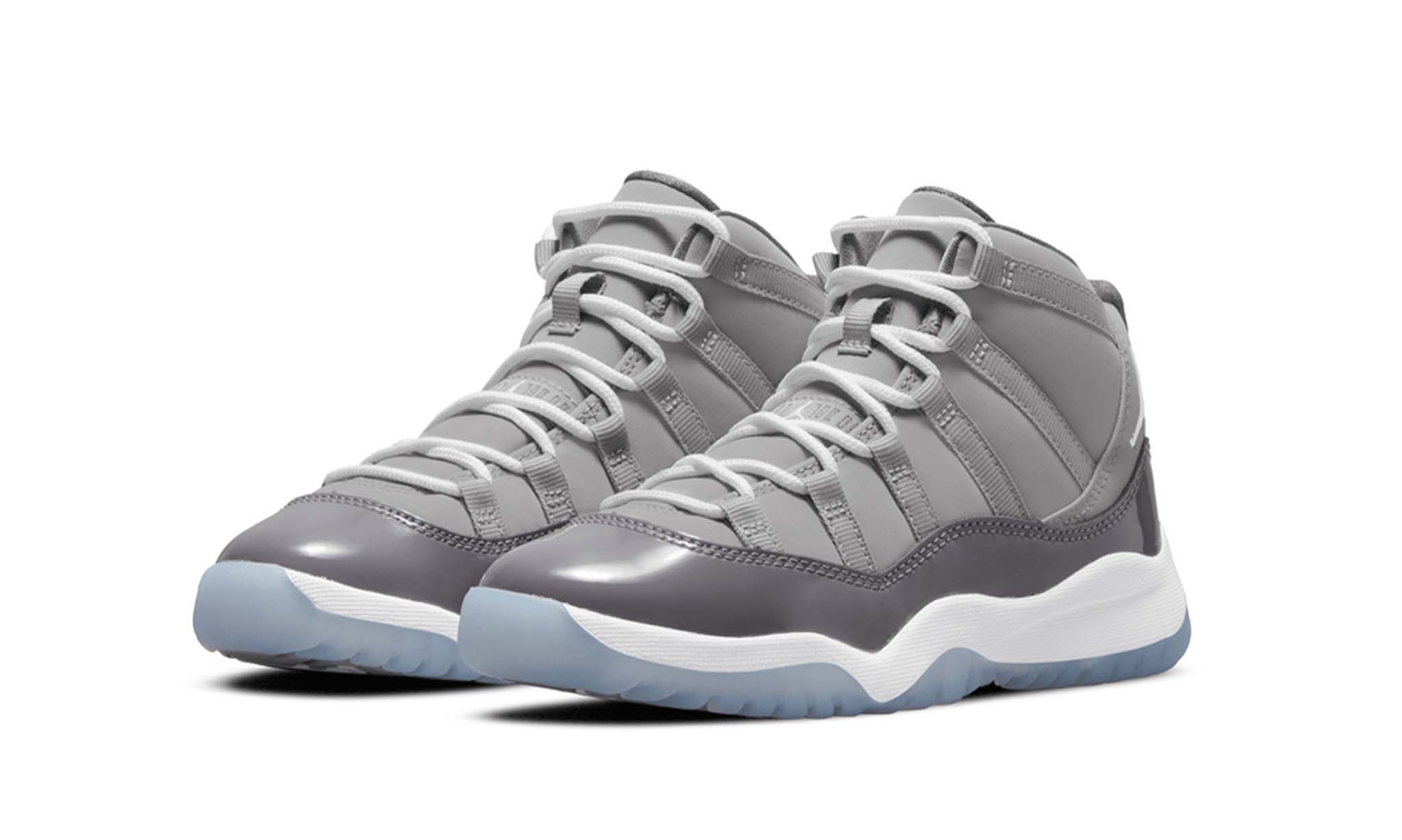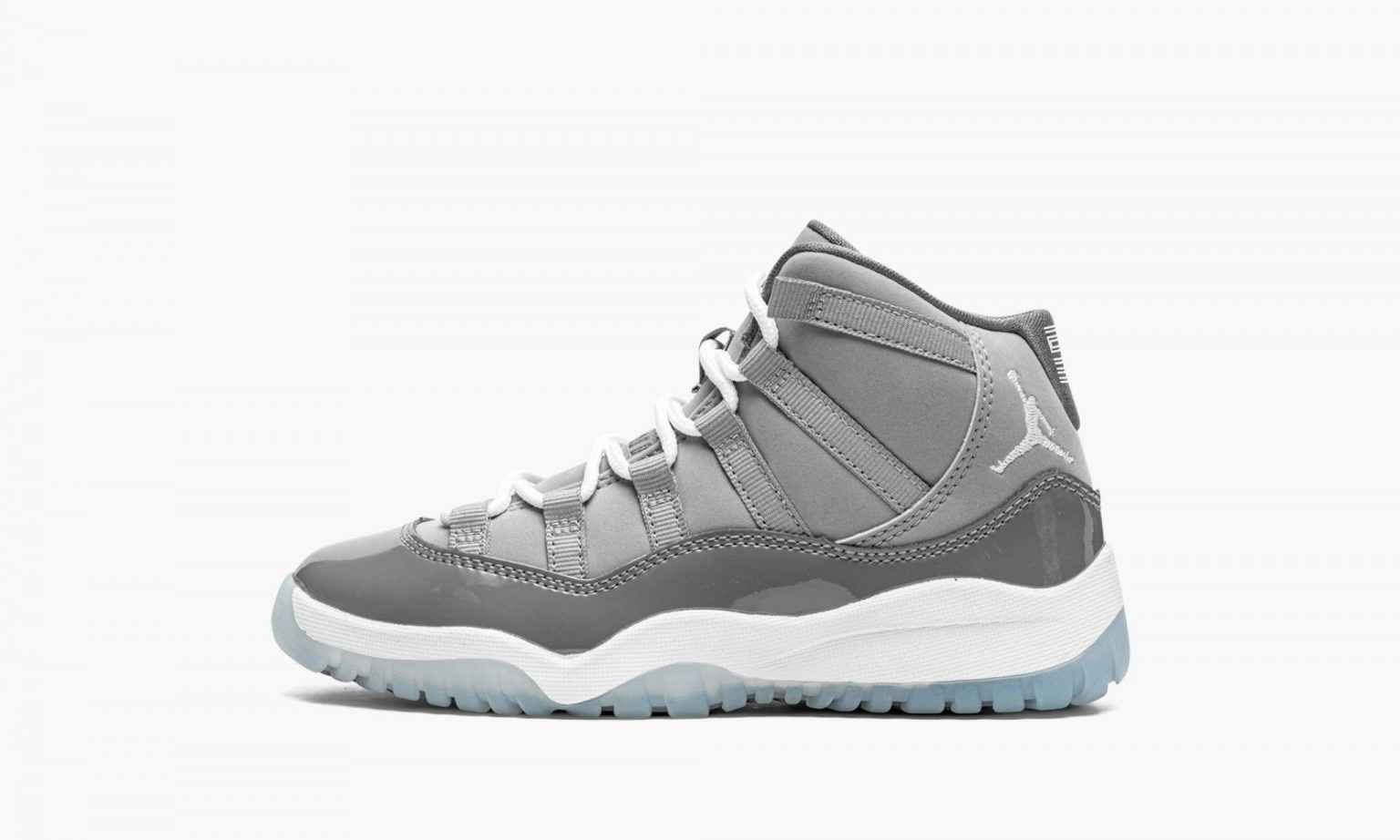 The Jordan 11 PS “Cool Grey 2021” is the preschool sizing of the popular colorway of Michael Jordan’s eleventh signature shoe. The “Cool Grey” colorway of the Air Jordan 11 is considered one of the most storied and influential Air Jordan shoes ever, despite the fact that it’s not an original colorway of the silhouette. First released back in March 2001, the “Cool Grey” was later worn by Jordan with the Washington Wizards. The colorway was brought back in December 2010, and again for this edition on the shoe’s 20th anniversary in December 2021. Details include a Cool Grey patent leather mudguard, Medium Grey synthetic nubuck upper, and white embroidered Jumpman on the collar. Additional details include a white “23” on the heel, white shoe laces, and a white foam midsole. An icy translucent blue outsole completes the look of this iconic shoe. Release date: December 11, 2021