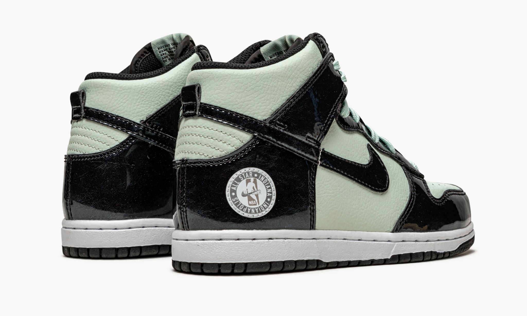 The Nike Dunk High PS “All-Star 2021” is the preschool sizing of the high-top lifestyle shoe dedicated to the 2021 NBA All-Star Game. The “All-Star 2021” Dunk was released in March 2021 in full-family sizing. The design joins the Air Jordan 1 Mid of the same nickname in celebrating the NBA’s popular mid-season exhibition game. In terms of design, a highlight detail of the shoe is its glossy black panels and Swoosh branding with wavy-textured detailing. The look dresses up the shoe and provides a welcome contrast against the minty green leather base. A small NBA All-Star insignia on the heel references Indiana, the location where the 2021 All-Star Game was supposed to be held before the COVID pandemic forced the NBA to alter its plans. Both the laces and tongue’s branding tag feature the Barely Green hue. Release date: March 9, 2021.