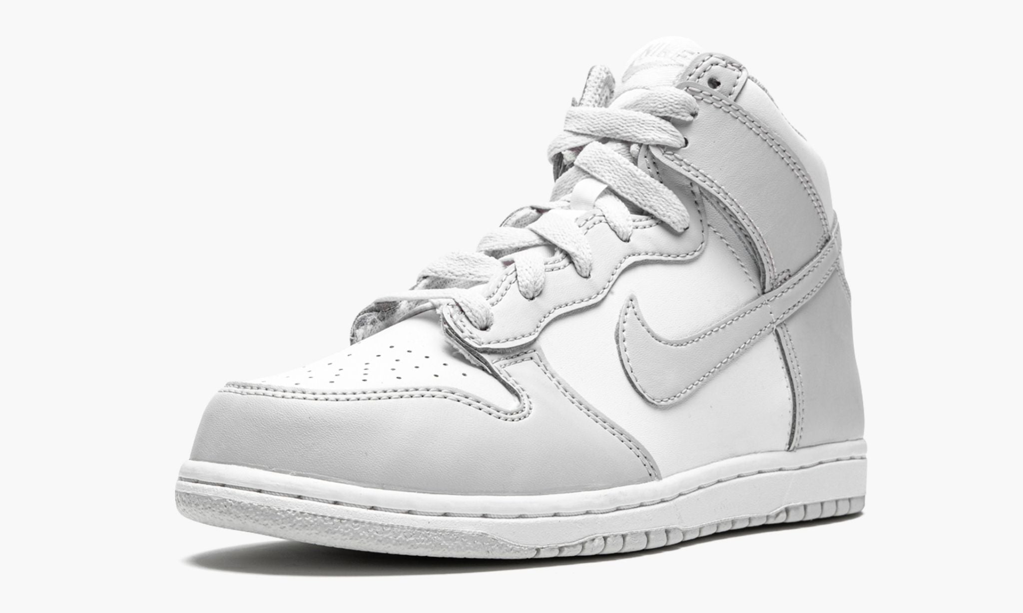 The Nike dunk High PS “Vast Grey” is the preschool sizing of the classic high-top shoe in an appealing low-contrast colorway. After debuting as Nike’s first-ever team basketball shoe in the ‘80s in the “Be True to Your School” pack. In the 2000s, the Dunk returned as a full-fledged skate under the Nike SB line, and enjoyed a resurgence in popularity in 2020 as appreciation for both the skate and “standard” Dunk reached a fever pitch. Here, the “Vast Grey” features a white and grey leather upper with the former material appearing on the perforated toe, mid-panel, and collar. The latter, a variety of light grey leather, can be found on the forefoot, eyelets, heel, and Swoosh branding. A Vast Grey outsole compliments the white midsole. Release date: February 25, 2021.The Nike Dunk High PS “Vast Grey” is the preschool sizing of the classic high-top shoe in an appealing low-contrast colorway. After debuting as Nike’s first-ever team basketball shoe in the ‘80s in the “Be True to Your School” pack. In the 2000s, the Dunk returned as a full-fledged skate under the Nike SB line, and enjoyed a resurgence in popularity in 2020 as appreciation for both the skate and “standard” Dunk reached a fever pitch. Here, the “Vast Grey” features a white and grey leather upper with the former material appearing on the perforated toe, mid-panel, and collar. The latter, a variety of light grey leather, can be found on the forefoot, eyelets, heel, and Swoosh branding. A Vast Grey outsole compliments the white midsole. Release date: February 25, 2021. Nike Dunk High PS “Vast Grey” is the preschool sizing of the classic high-top shoe in an appealing low-contrast colorway. After debuting as Nike’s first-ever team basketball shoe in the ‘80s in the “Be True to Your School” pack. In the 2000s, the Dunk returned as a full-fledged skate under the Nike SB line, and enjoyed a resurgence in popularity in 2020 as appreciation for both the skate and “standard” Dunk reached a fever pitch. Here, the “Vast Grey” features a white and grey leather upper with the former material appearing on the perforated toe, mid-panel, and collar. The latter, a variety of light grey leather, can be found on the forefoot, eyelets, heel, and Swoosh branding. A Vast Grey outsole compliments the white midsole. Release date: February 25, 2021.