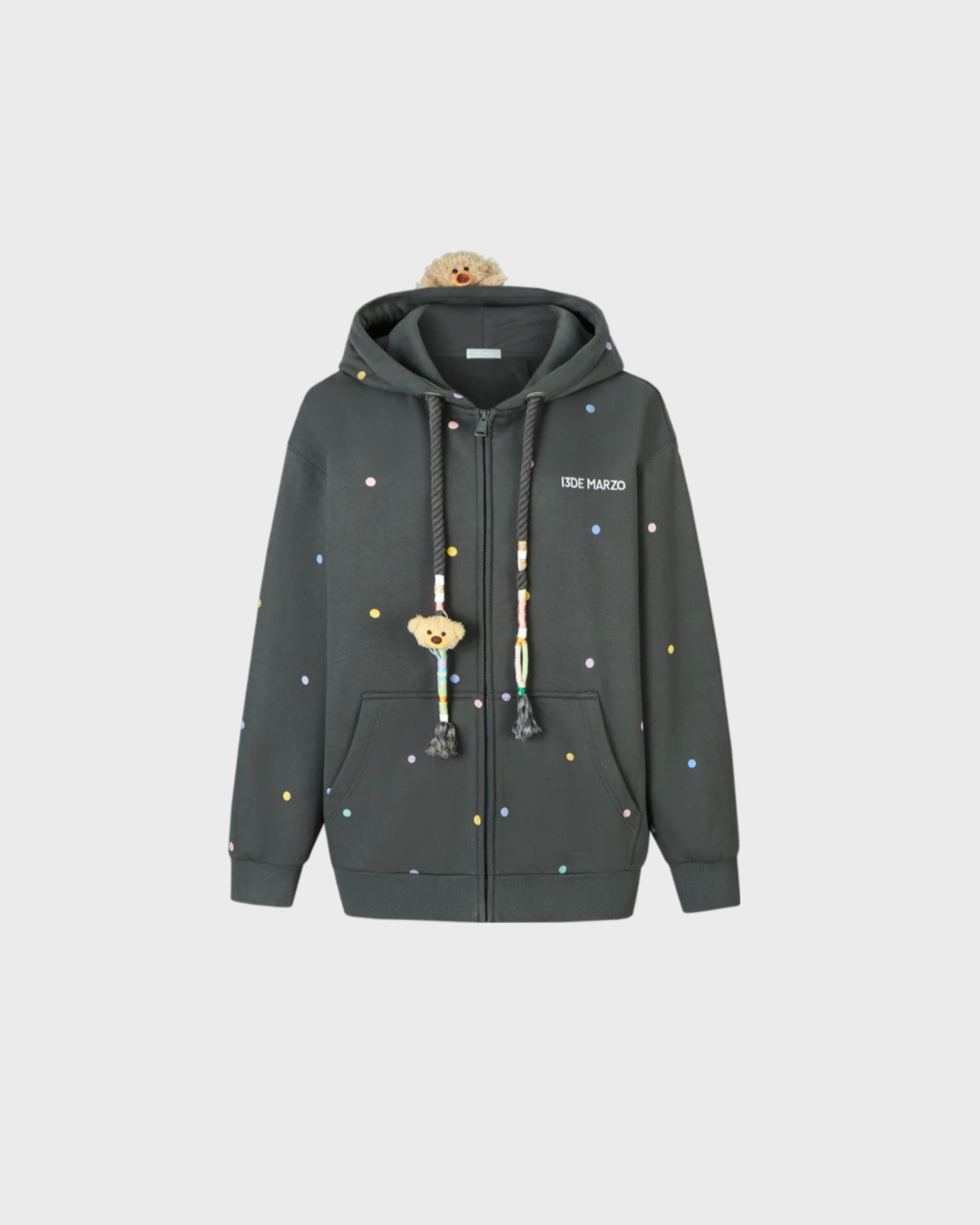 13De Marzo BEAR Colorful Dots Down Jacket Dark Grey