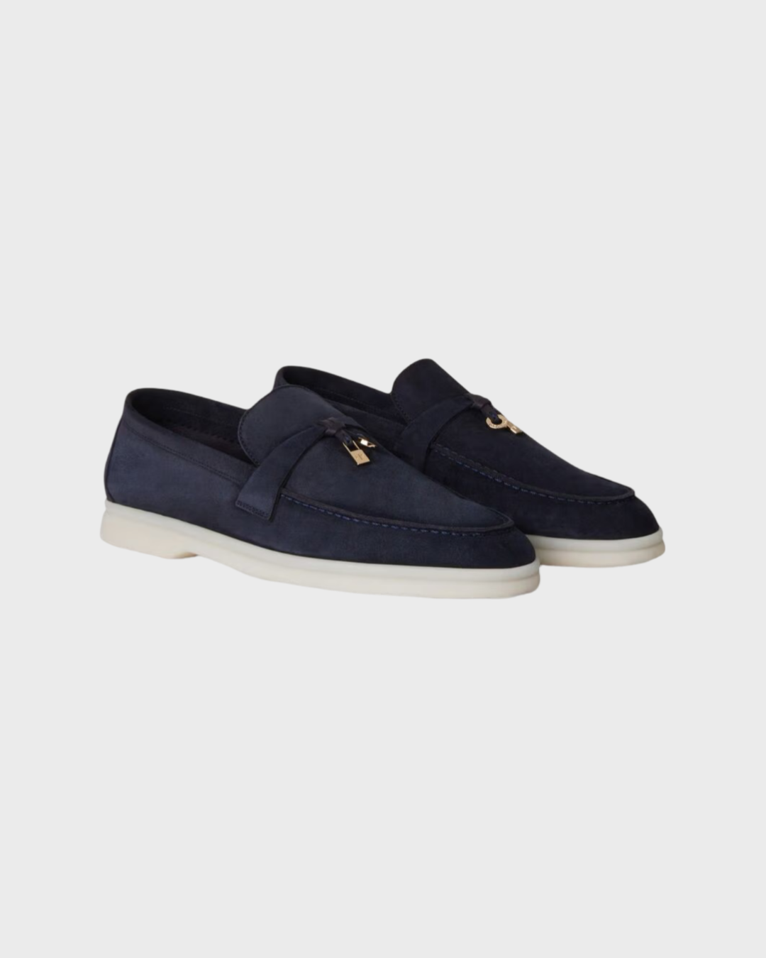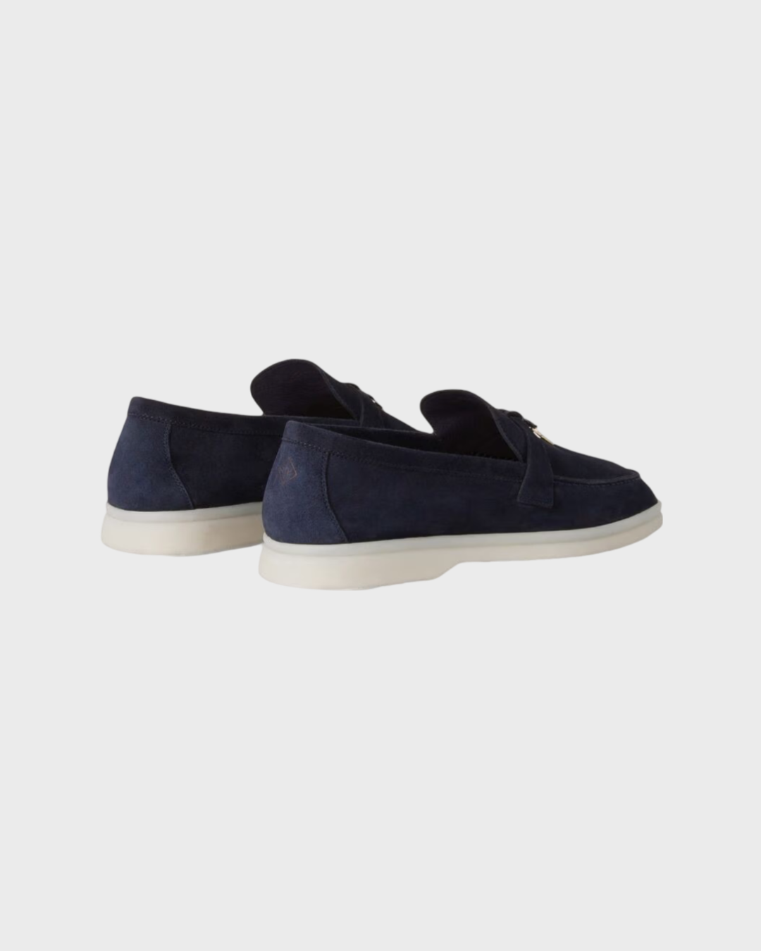 Comfortable, sporty loafers made from soft suede. They are enhanced with rubber soles ,a common feature of all Loro Piana sportswear shoes. The front saddles are embellished with mini My Charms. Perfect for summers spent sailing, at the beach or in the city.