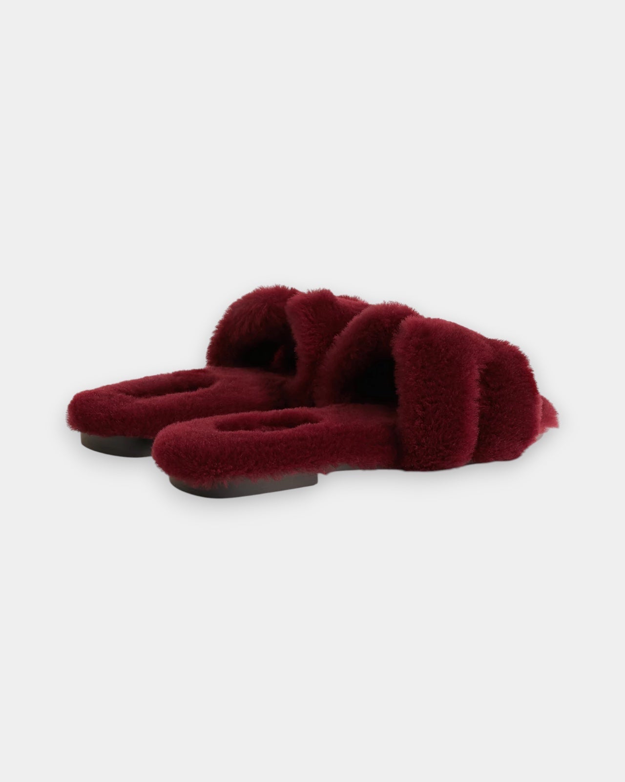 Shearling sandals featuring the iconic “H” cut-out design, offering an elegant and summery silhouette.