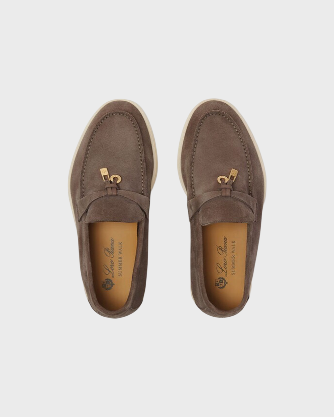 Comfortable, sporty loafers made from soft suede. They are enhanced with rubber soles — a common feature of all Loro Piana sportswear shoes. The front saddles are embellished with mini My Charms. Perfect for summers spent sailing, at the beach or in the city.Non-slip soles with all-over, embossed Loro Piana monogram.