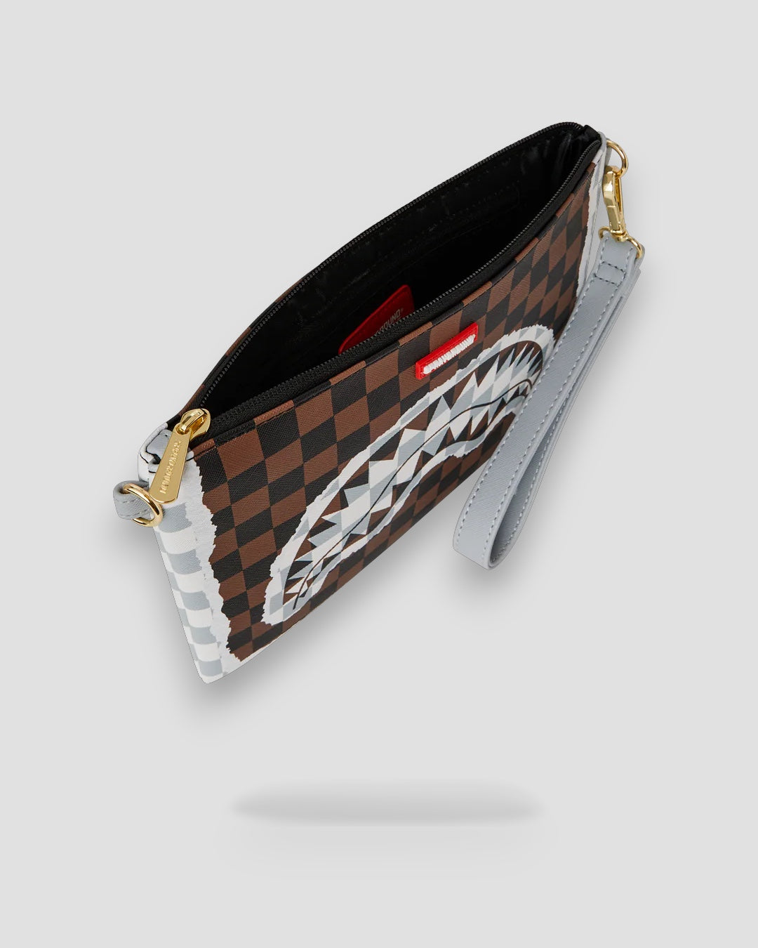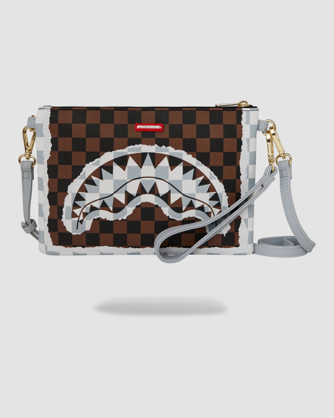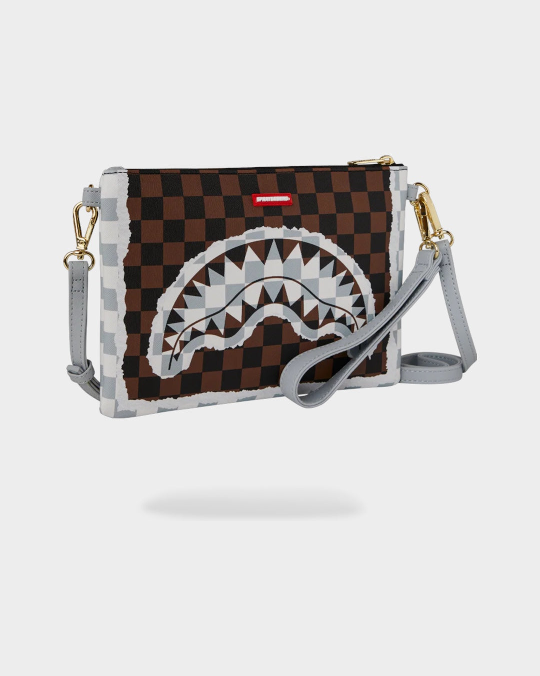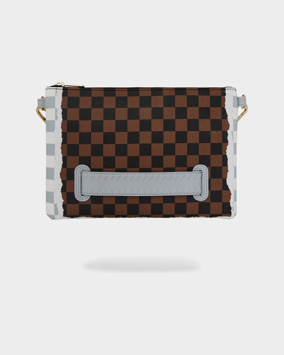 Sprayground Cream & Brown Tear Check Crossover Clutch