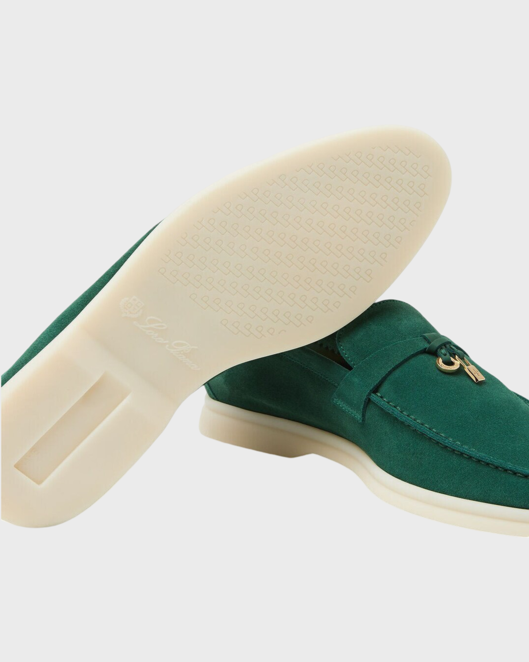 Comfortable, sporty loafers made from soft suede. They are enhanced with rubber soles a common feature of all Loro Piana sportswear shoes.
