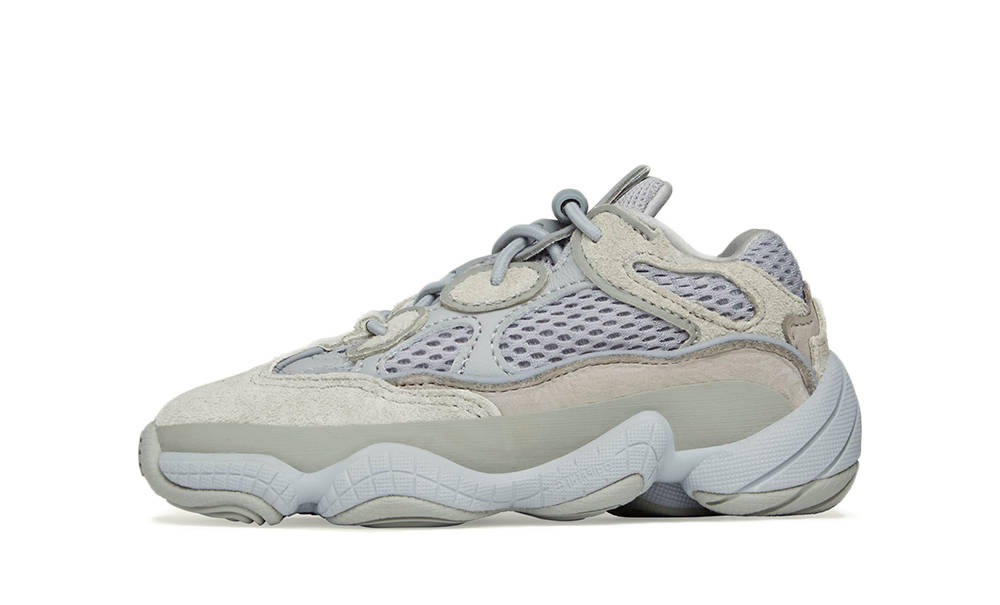 The Adidas Yeezy 500 "Stone Salt" is a children's and infants' version of the Yeezy 500 model, designed by Kanye West for the Yeezy line. It offers the same distinct design and comfort as the adult version but in smaller sizes for younger sneaker enthusiasts. Here are the key details: