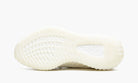 The outsole of the Yeezy Boost 350 V2 "Bone" is made from a durable rubber compound and features a herringbone tread pattern that provides traction and durability. The translucent rubber outsole allows for visibility of the Boost material beneath, further emphasizing the sneaker's premium, performance-oriented features.