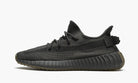 - Colorway: The "Cinder" colorway features a dark grey and black base with a subtle brownish hue. The primeknit upper has a muted, earthy tone that blends well with the translucent stripe, which is characteristic of the 350 V2 model.