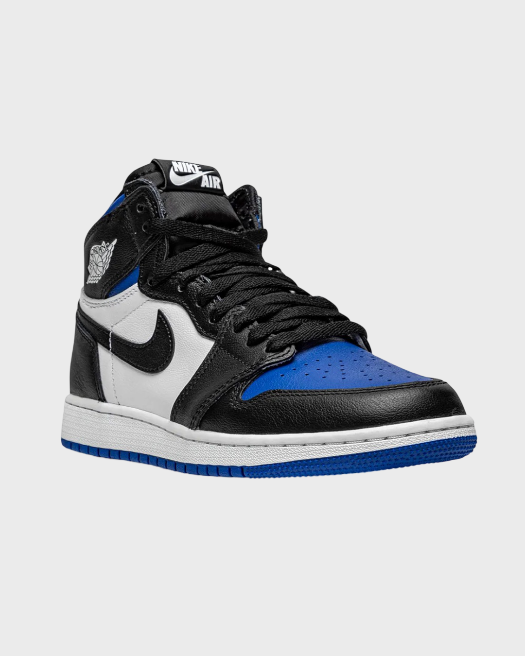 The Air Jordan 1 GS “Royal Toe” is the youth sizing of the popular summer 2020 colorway. Using the same color block of the OG-inspired Jordan 1 High "Bred Toe," this edition features a white leather mid-panel, a black leather heel and collar, and royal blue panels on the toe and ankle. Contrasting black leather overlays appear on the forefoot and eyelet. A black leather Swoosh covers each side and white Wings branding can be found on the collar. White “Nike Air” graces the tongue tag to complete the look. Release date: May 9, 2020.
