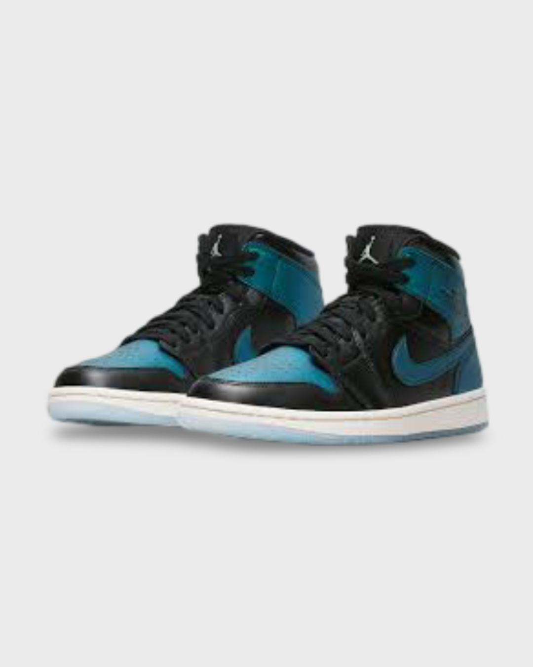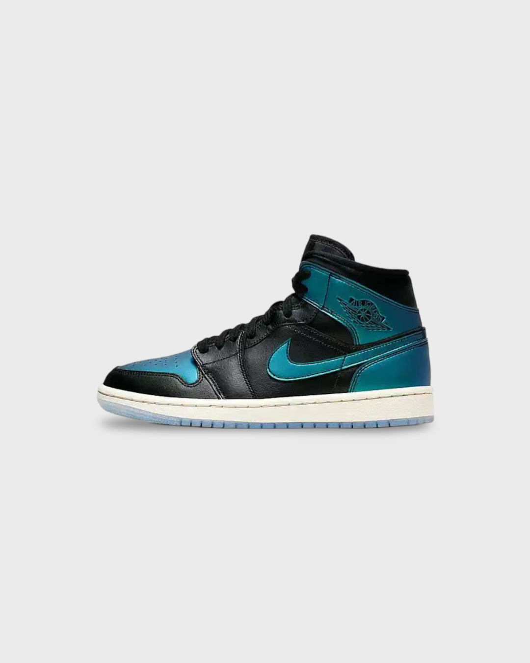 The Air Jordan 1 Mid Iridescent Black W takes on the first signature shoe of the collaborative line of the brand and NBA champion.