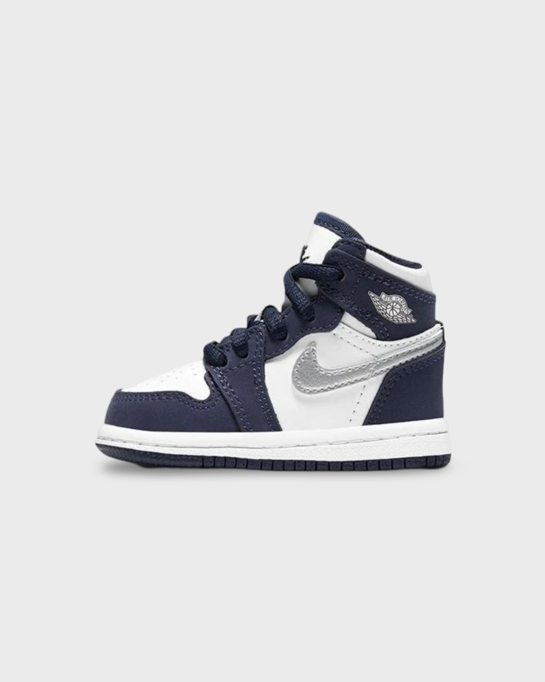 Drawing inspiration from the original 2001 "CO Japan" release, the Jordan 1 Retro High COJP Midnight Navy (TD) features a Midnight Navy and white coloration, delivering a sophisticated and timeless aesthetic.