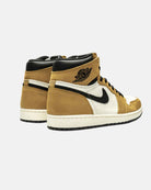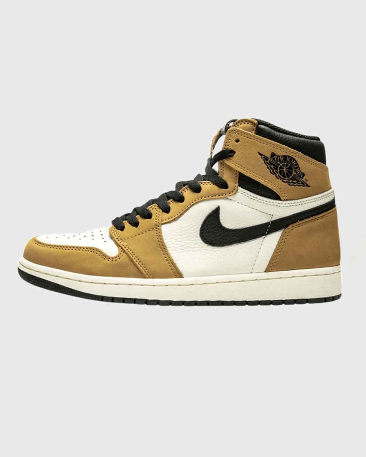 In 1985, Michael Jordan received the NBA’s Rookie of the Year Award after launching his career with a remarkable point per game average and a thirst for success. To celebrate, Jordan Brand released the Air Jordan 1 Retro High OG 'Rookie of the Year.' The high top features a white-based leather upper with perforations on the toe box for breathability and Gold Harvest leather overlays on the mudguard, ankle, eyestay, and heel. Hidden on the inside of each strap on the upper are callouts to MJ’s outstanding rookie season. ‘1984-85 R.O.Y. 2313 POINTS 28.2 PPG’ can be found on the inside of one strap, and a quote from Jordan can be found on the other.