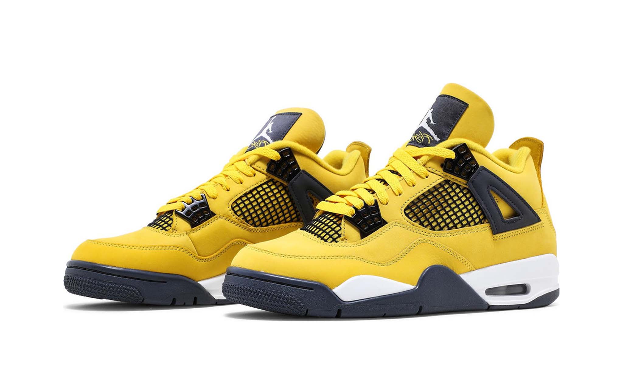 The Air Jordan 4 “Lightning 2021” is a modern re-issue of the desirable colorway of Michael Jordan’s fourth signature shoe that was originally released in August 2006. Without question one of the most sought-after non-original Air Jordan shoes ever, the first “Lightning” was released in hyper-limited quantities exclusively on Jumpman23.com (the former Jordan Brand website) alongside a "reverse" black and yellow “Thunder” Jordan 4, together creating the “Thunder & Lightning” pack. The “Lightning” was accompanied by an Air Jordan “Flight” T-shirt and the “Thunder” was paired with a varsity jacket. In 2012, Jordan Brand brought back the “Thunder,” but curiously decided against releasing the “Lightning.” 15 years after its debut, the “Lightning” returned in near true-to-original fashion. Like the OG, the modern incarnation of the “Lightning” features Tour Yellow nubuck on its upper with black mesh on the tongue and mid-panel. Grey “wings” and black eyelets contrast the yellow look. Elsewhere, white Jumpman branding appears on the nylon tongue tag and a black Jumpman graces the back of the shoe. Jordan Brand opts for a slightly lighter grey rubber outsole than that of the unit found on the original “Lightning” from 2006. Release date: August 28, 2021