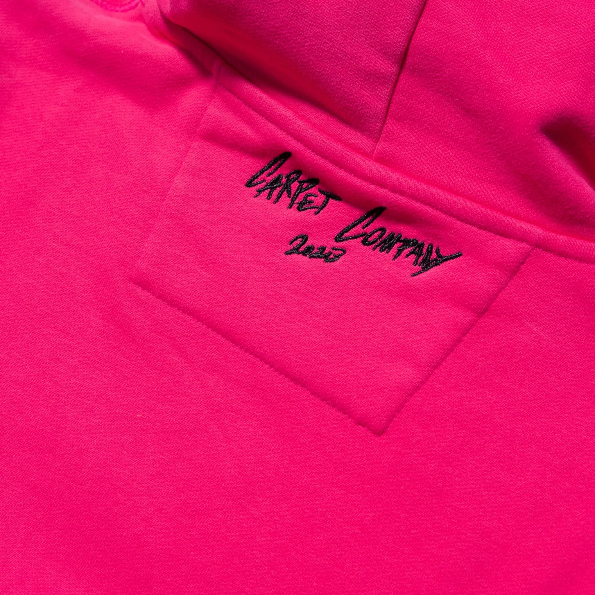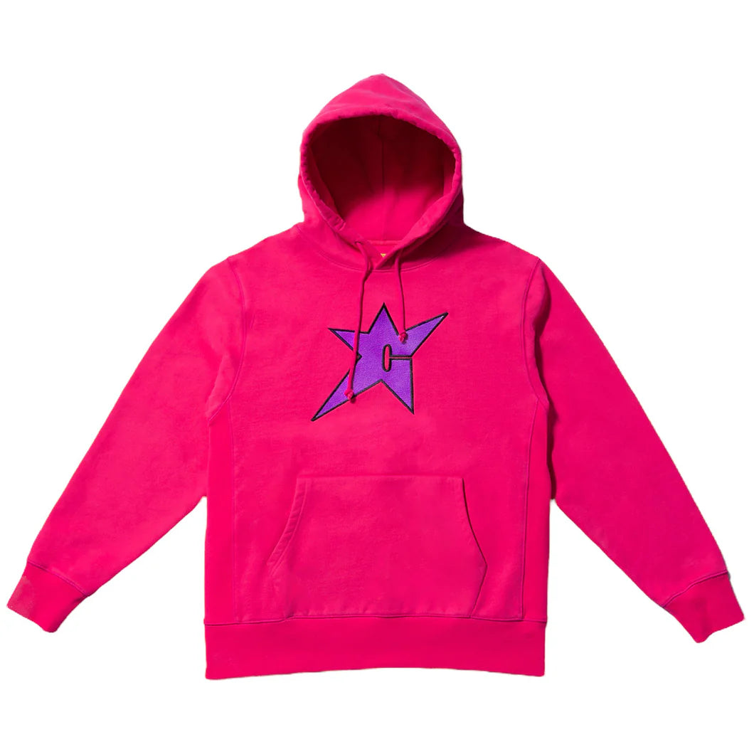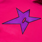 The Carpet Company "C-Star" Pink Hoodie is a standout piece in their collection, featuring a unique and bold design. This hoodie is crafted from a super heavyweight material and includes ultra-thick embroidery, ensuring durability and an eye-catching aesthetic. The embroidery adds texture and depth, complementing the pink and purple color palette. Its cozy yet sturdy design makes it suitable for both everyday wear and showcasing individuality in streetwear culture.