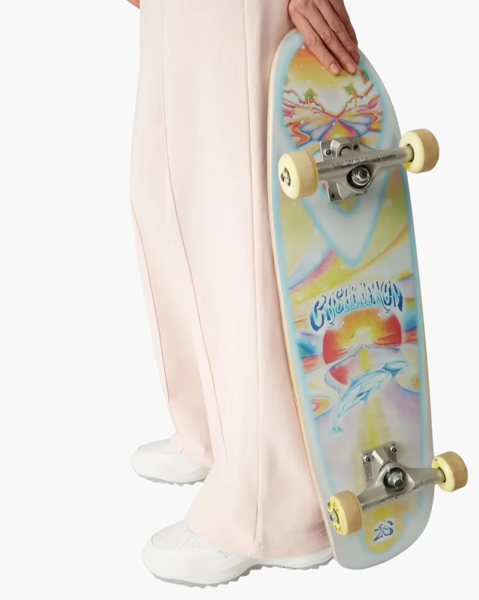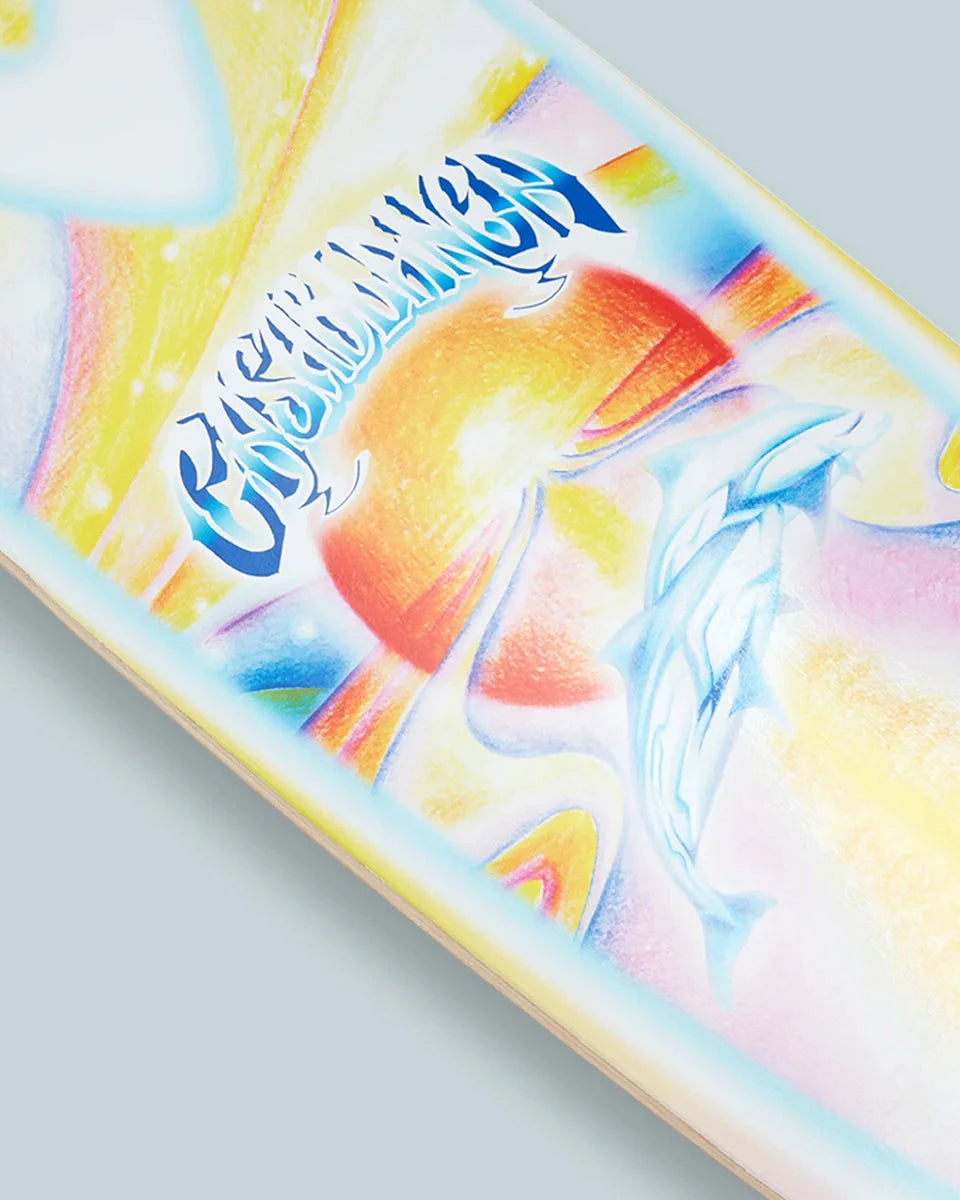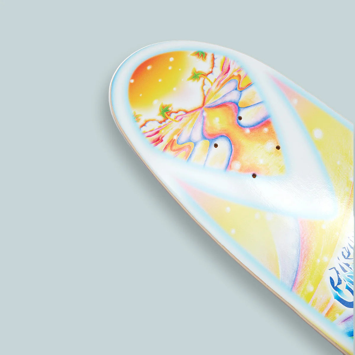 The Casablanca SS25 cruiser skateboard deck is a limited-edition collector's item, crafted from premium Canadian hard rock maple and water-based glue, featuring the house's Psychedelic Nirvana artwork on the underside. Completed with Casablanca branding; this item is specially made for our Printemps-Été 2025 runway show, each 8.125" deck comes in an assorted top-stain colour and 100% recyclable packaging. Top stain colours are randomly assorted from a curated palette of red, brown, black, blue, and yellow at purchase.