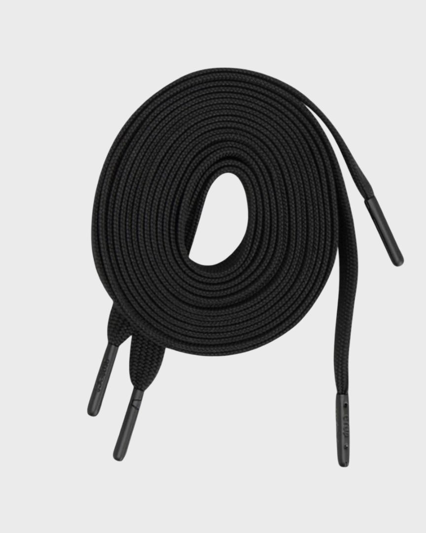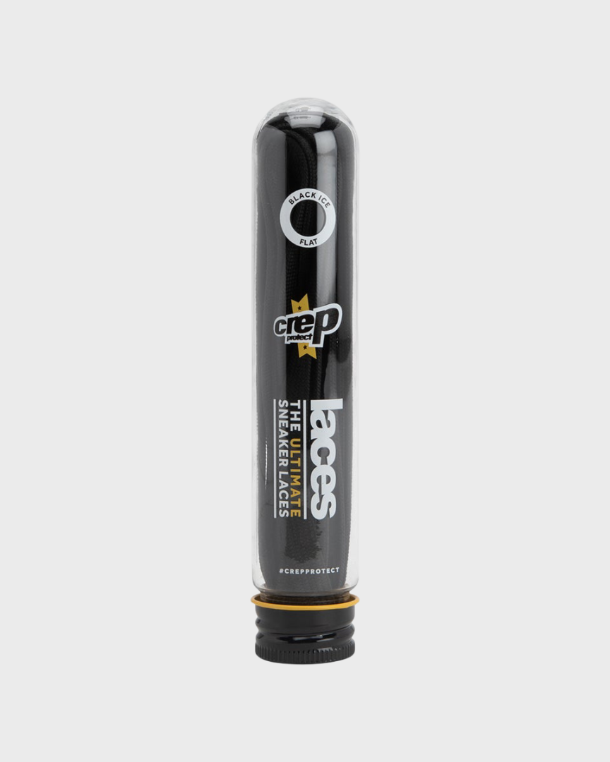 The black Flat Laces arrive from Crep Protect. This shoe staple lasts up to 10 washes, keeping your kicks looking super fresh. Waterproofing technology is infused within the fibres to repel liquid and stains!