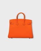 The Hermès Birkin 25 in iconic Orange Togo leather is the ultimate expression of luxury and exclusivity. Handcrafted by Hermès artisans, this coveted bag combines impeccable craftsmanship with one of the house’s most recognizable signature colors. Finished with sleek palladium hardware, it offers a modern, elegant contrast that elevates any look.