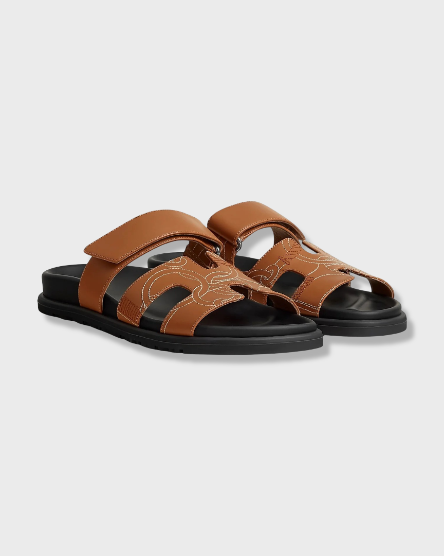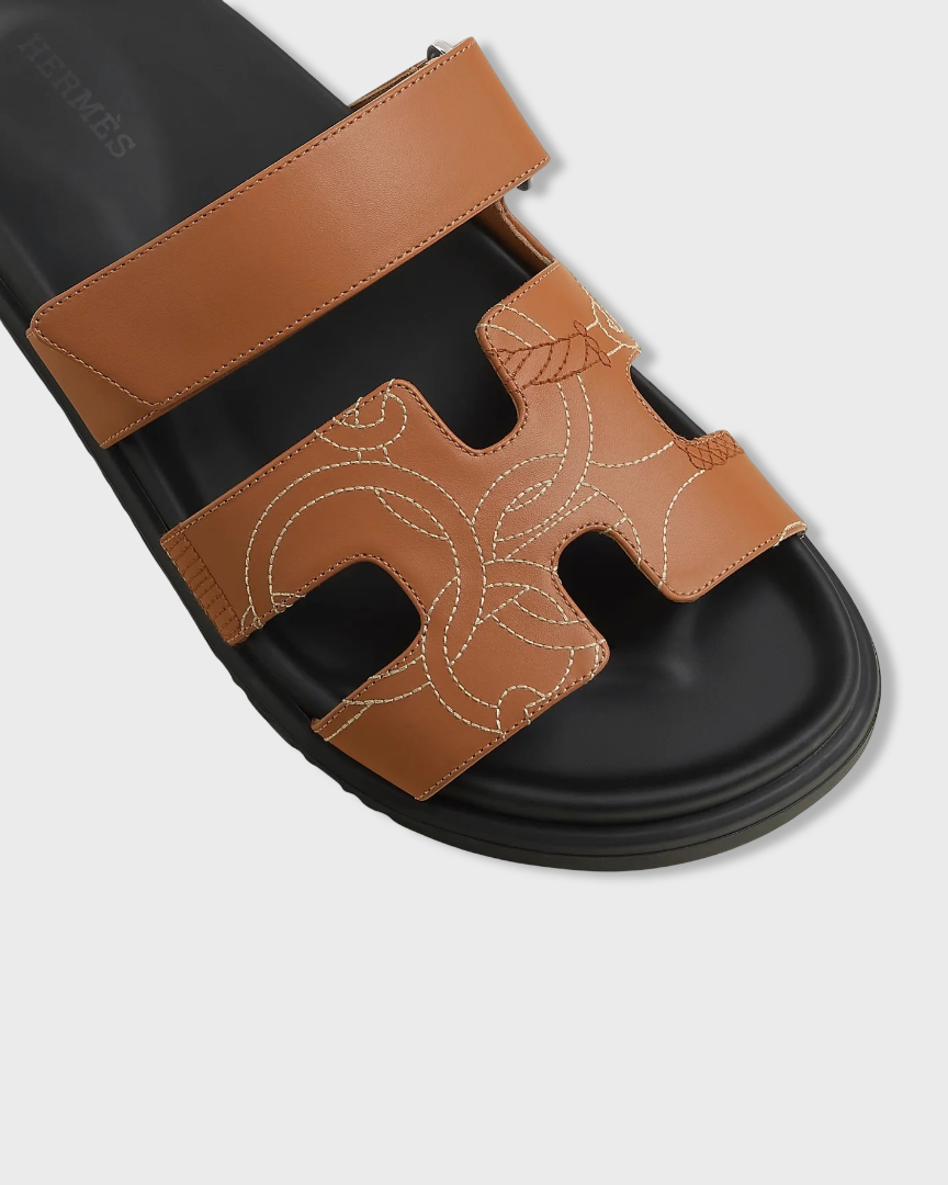 Hermes Chypre Sandal Panoplie Equestre Embroidered Calfskin