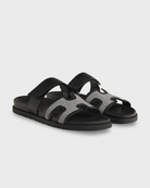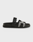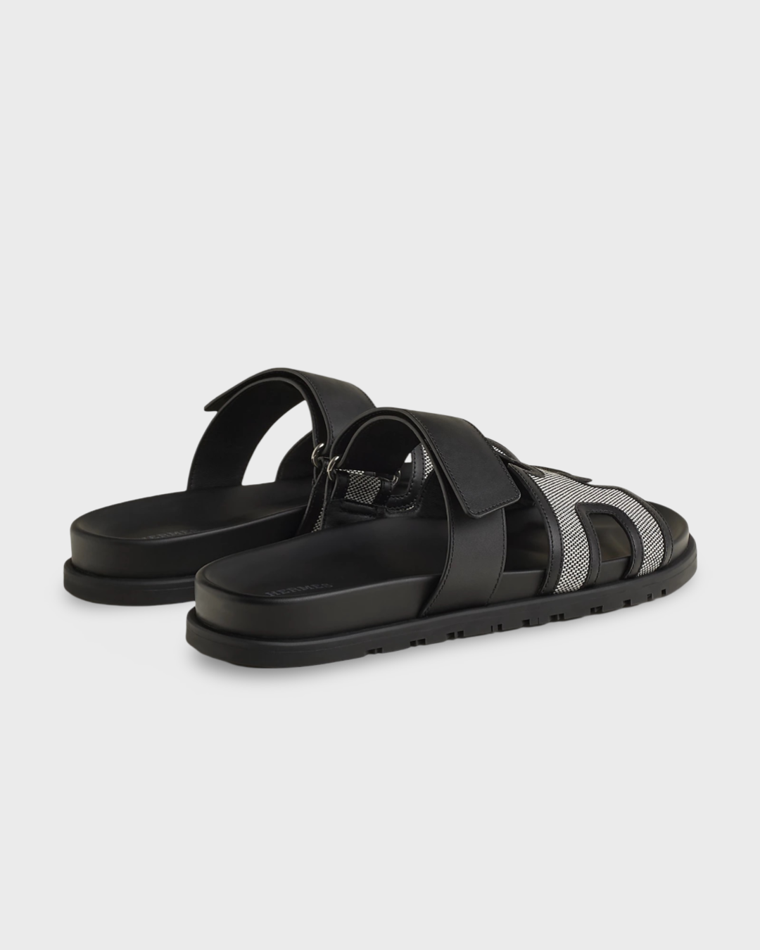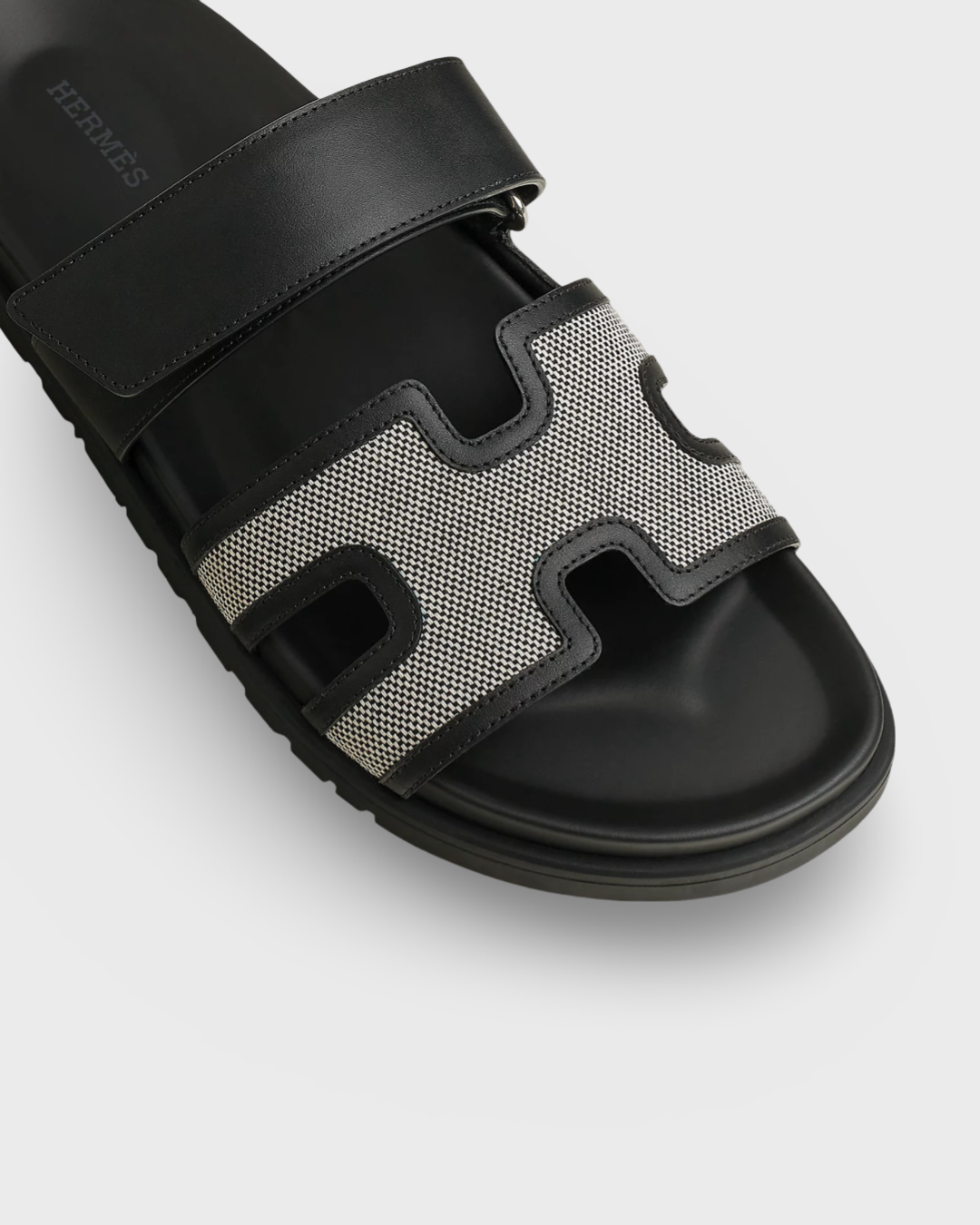 Techno-sandal in H Maxi canvas and calfskin with anatomical rubber sole and adjustable strap.