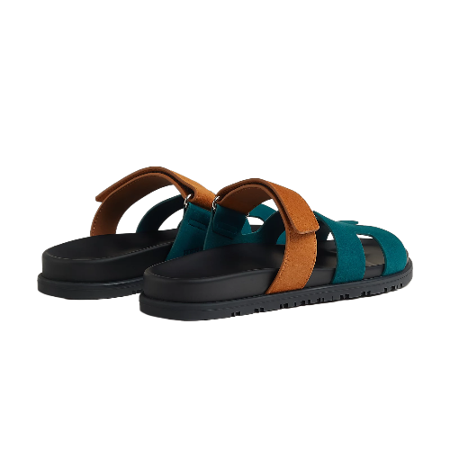 Techno-sandal in suede goatskin with anatomical rubber sole and adjustable strap.