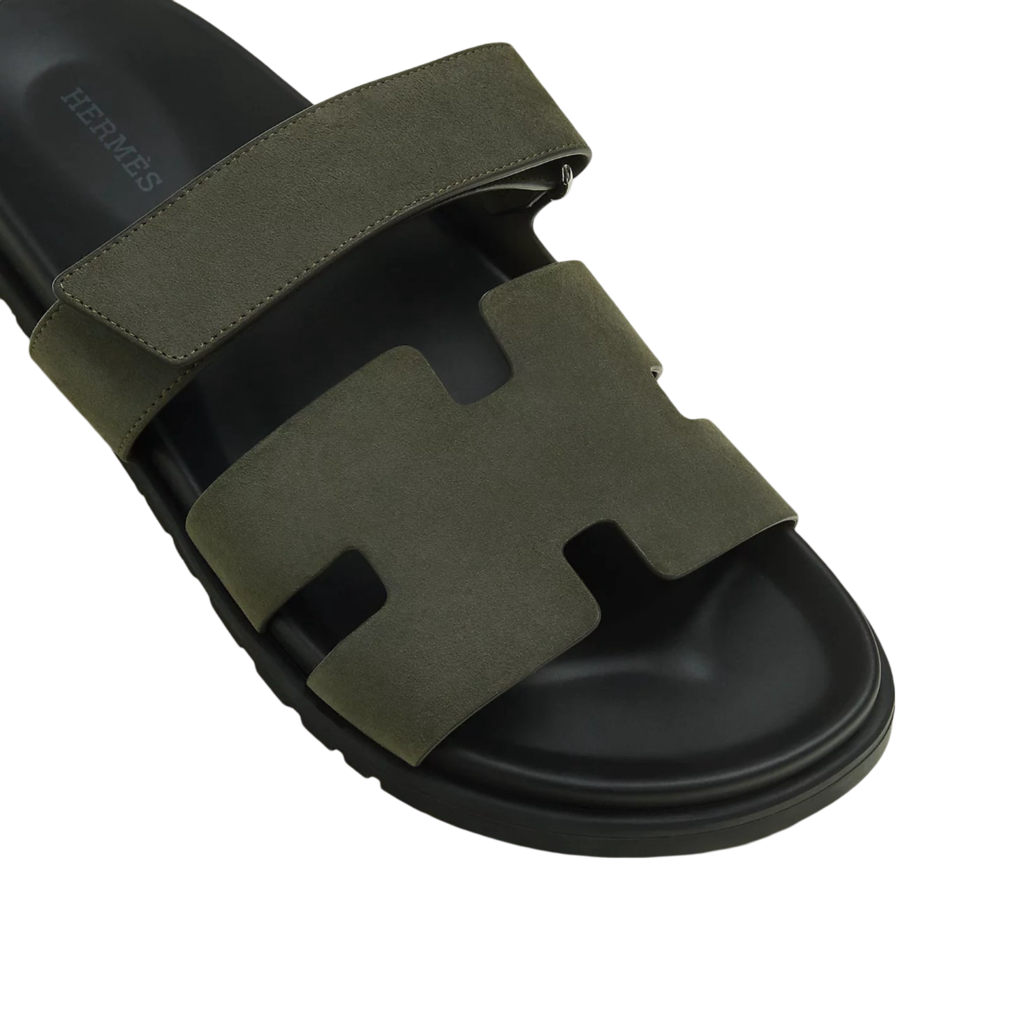 Techno-sandal in suede goatskin with anatomical rubber sole and adjustable strap.