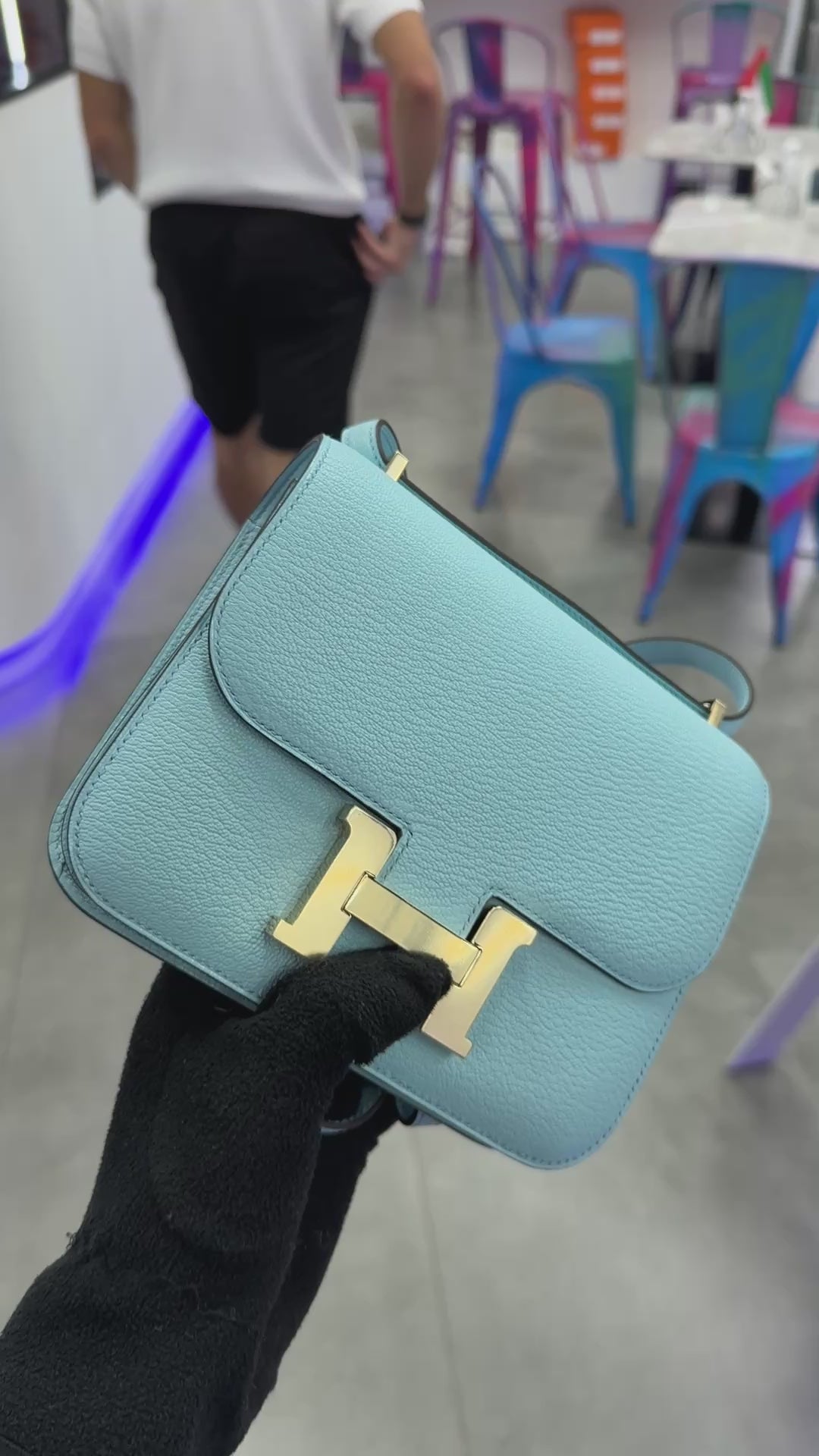 Hermes Constance 18 Bleu Zephyr Chevre Permabrass