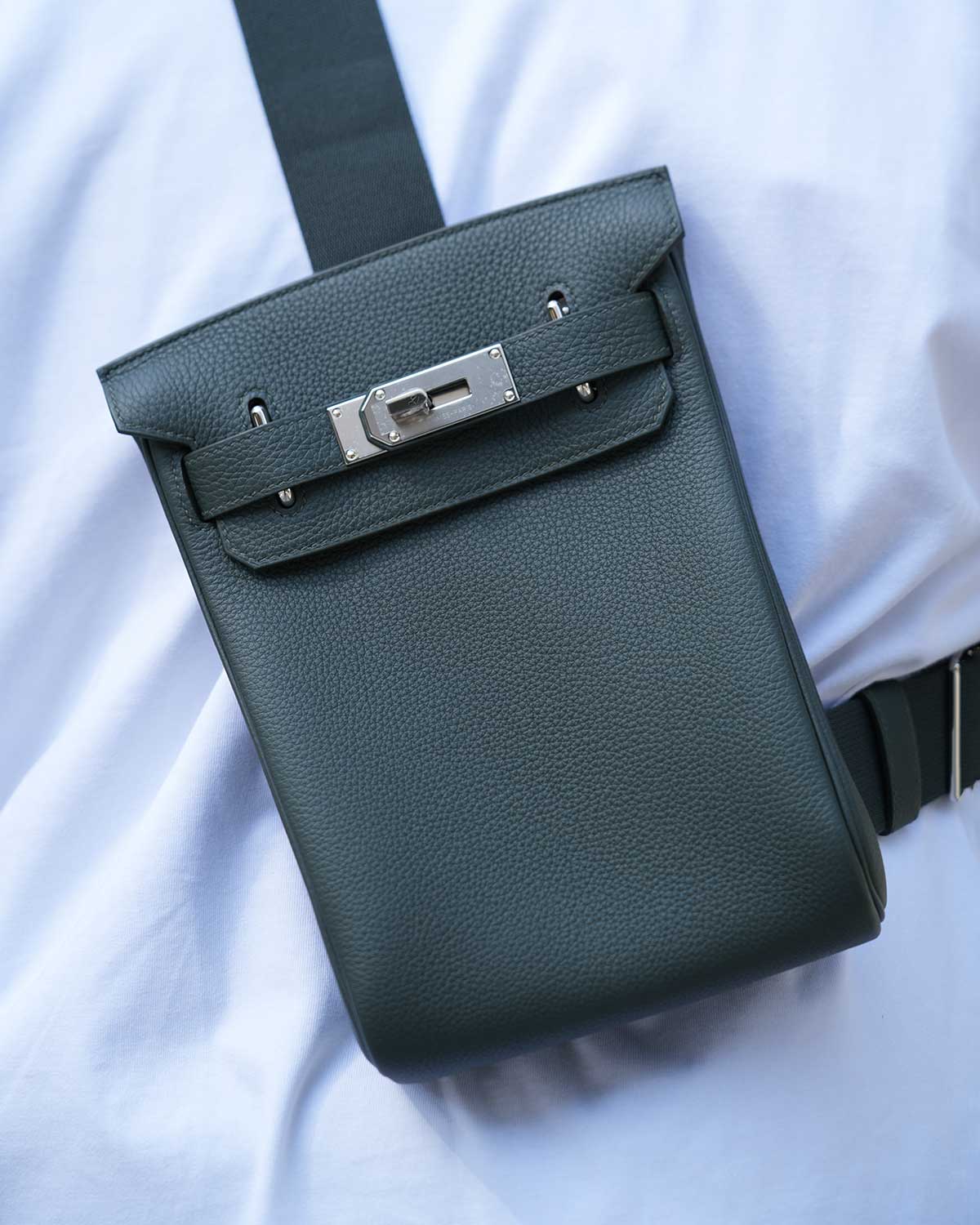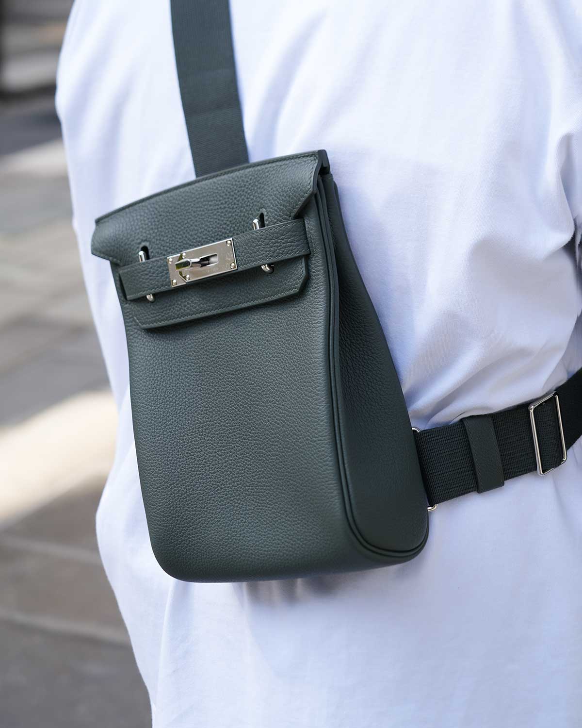 Also shown worn crossbody and slung of the shoulder.