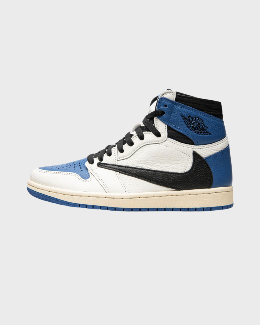 The Travis Scott x Fragment x Air Jordan 1 High OG “Military Blue” is a three way collaboration between the Houston rapper, the Japanese streetwear outfit, and Jordan Brand on Michael Jordan’s first signature shoe.