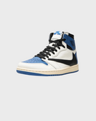 Released alongside an Air Jordan 1 Low, the Travis Scott and Hiroshi Fujiwara-designed high-top Jordan 1 “Military Blue” combines the distinct aesthetics of both Scott and Fujiwara on the iconic retro basketball shoe.