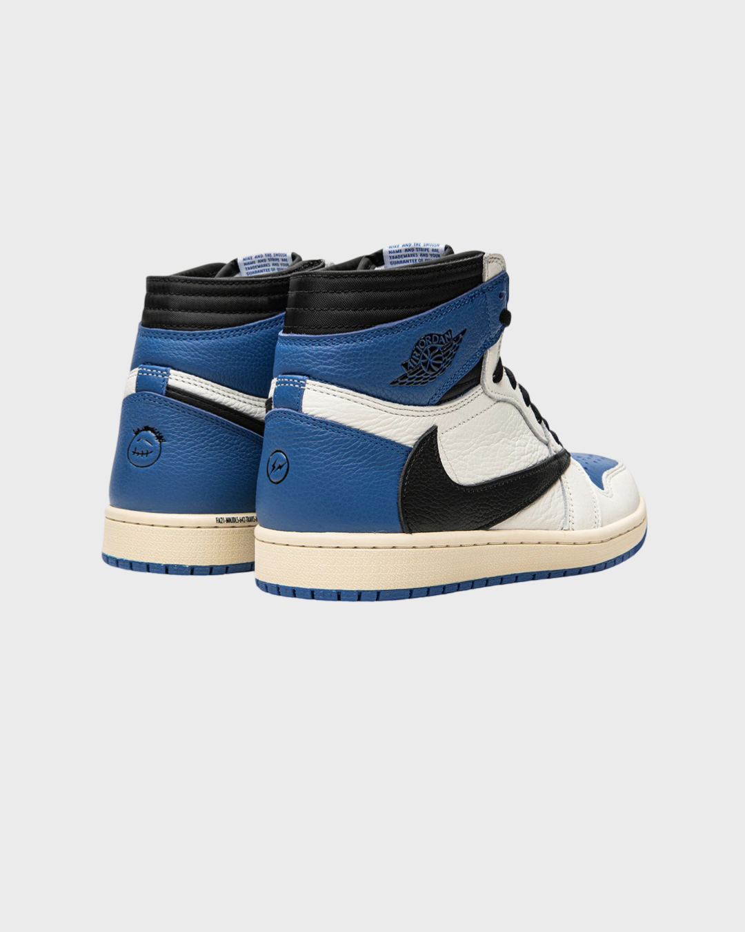 Dual “Cactus Jack” and Fragment insignia can be found on the back of the left and right shoe, respectively. The Travis Scott x Fragment x Air Jordan 1 High OG “Military Blue” is one of the most desirable sneaker.