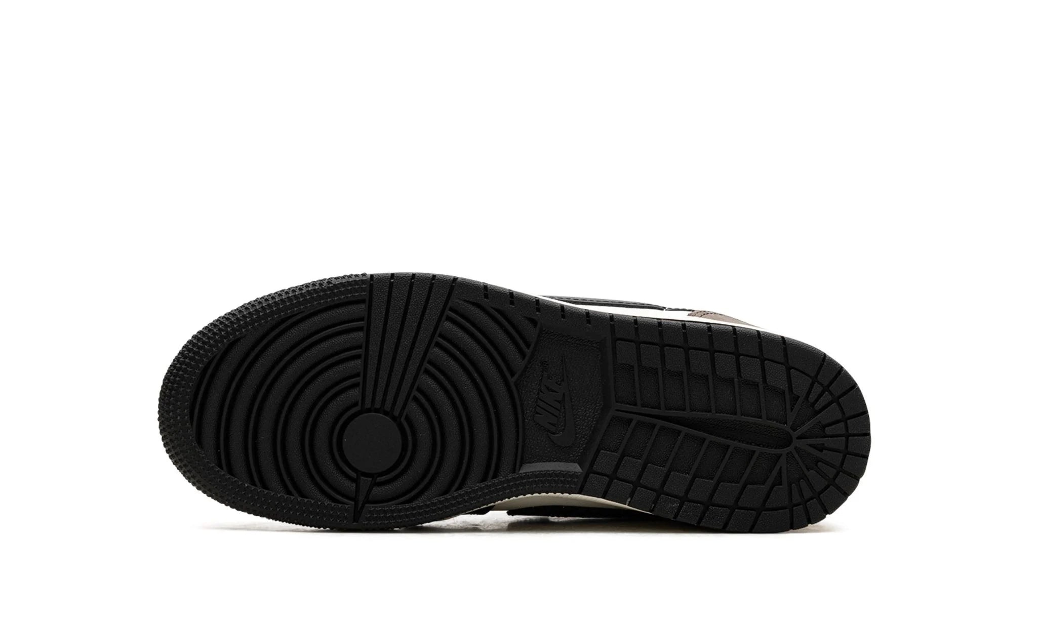 - A Dark Mocha rubber outsole with classic Jordan 1 tread pattern ensures grip and stability for any activity.