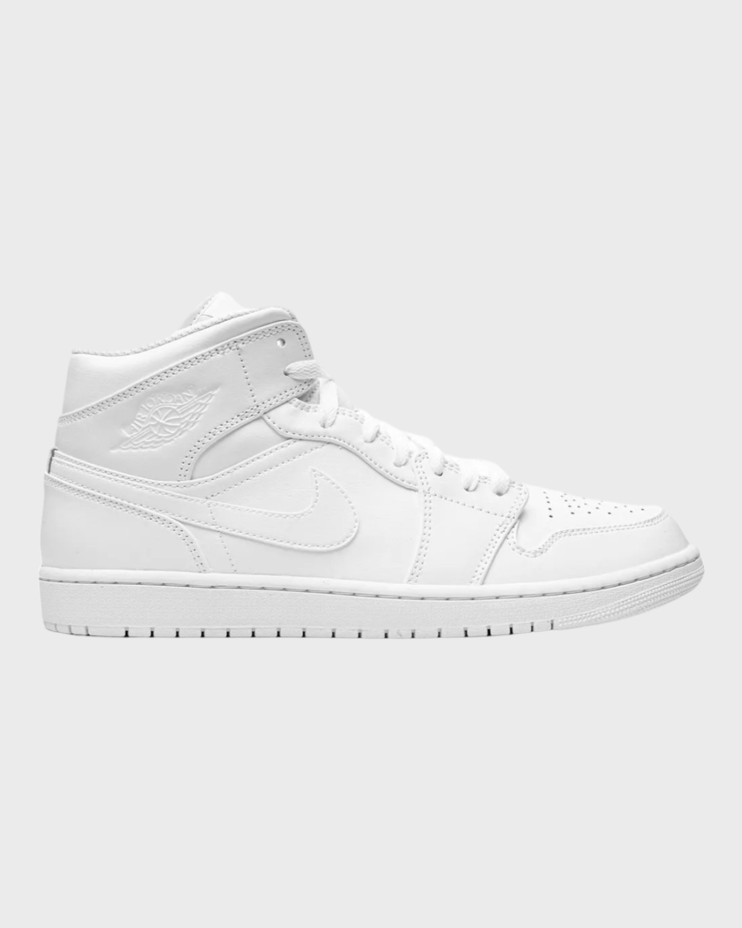 The Air Jordan 1 Mid Triple White comes in a white colorway.