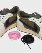 Ushering a pop of colour, bright red accents animate the Nike Air branding on the tongue and embroidered Cactus Jack and Wings logos on the rear. Co-branding decorates the insoles, another mainstay detail seen in past collaborations. Sail white laces and midsoles embrace a pre-aged look, while the olive outsoles match the uppers. The shoe includes extra pink and black laces alongside special-edition packaging.