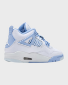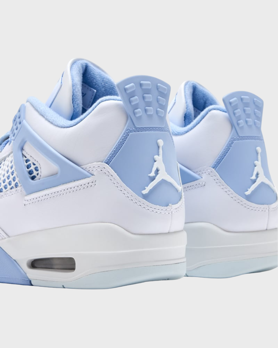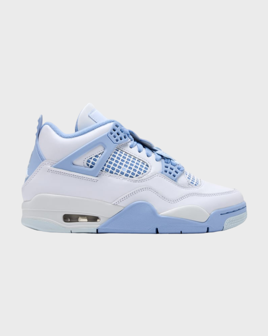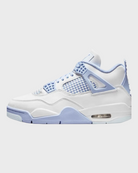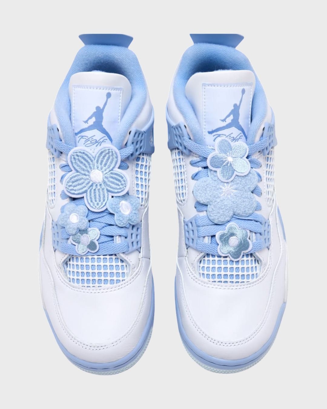The Air Jordan 4 Retro Forget Me Not (Women's) brings a fresh floral vibe to the iconic silhouette. Dressed in a clean white base, the sneaker features accents of aluminum, blue tint, and oil green, creating a serene and stylish look. Removable floral patches on the tongues pay homage to the forget-me-not flower, adding a unique touch that celebrates Mother's Day.