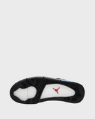 The bright blue nubuck construction with black and red accents takes inspiration from the team colors of the now defunct Houston Oilers football team, a reference to the rapper's Texas roots. Speckled detailing and Scott's "Cactus Jack" logo on the left heel tab add more personal touches to the shoe.