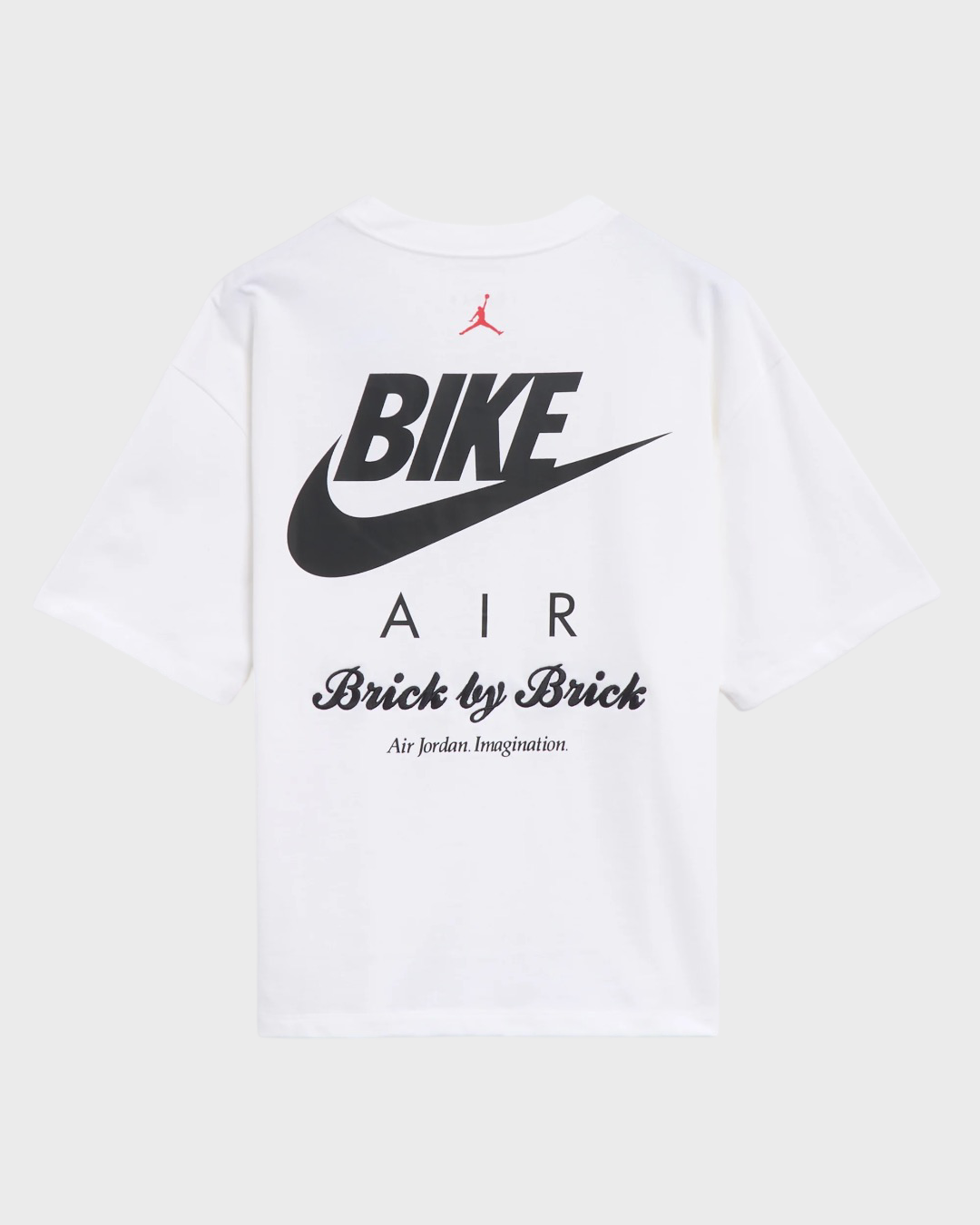 The Jordan x Nigel Sylvester Brick T-Shirt in white is a standout piece from the "Brick by Brick" apparel collection, a collaboration between BMX athlete Nigel Sylvester and Jordan Brand. This collection reflects Sylvester's innovative approach to BMX and street culture.