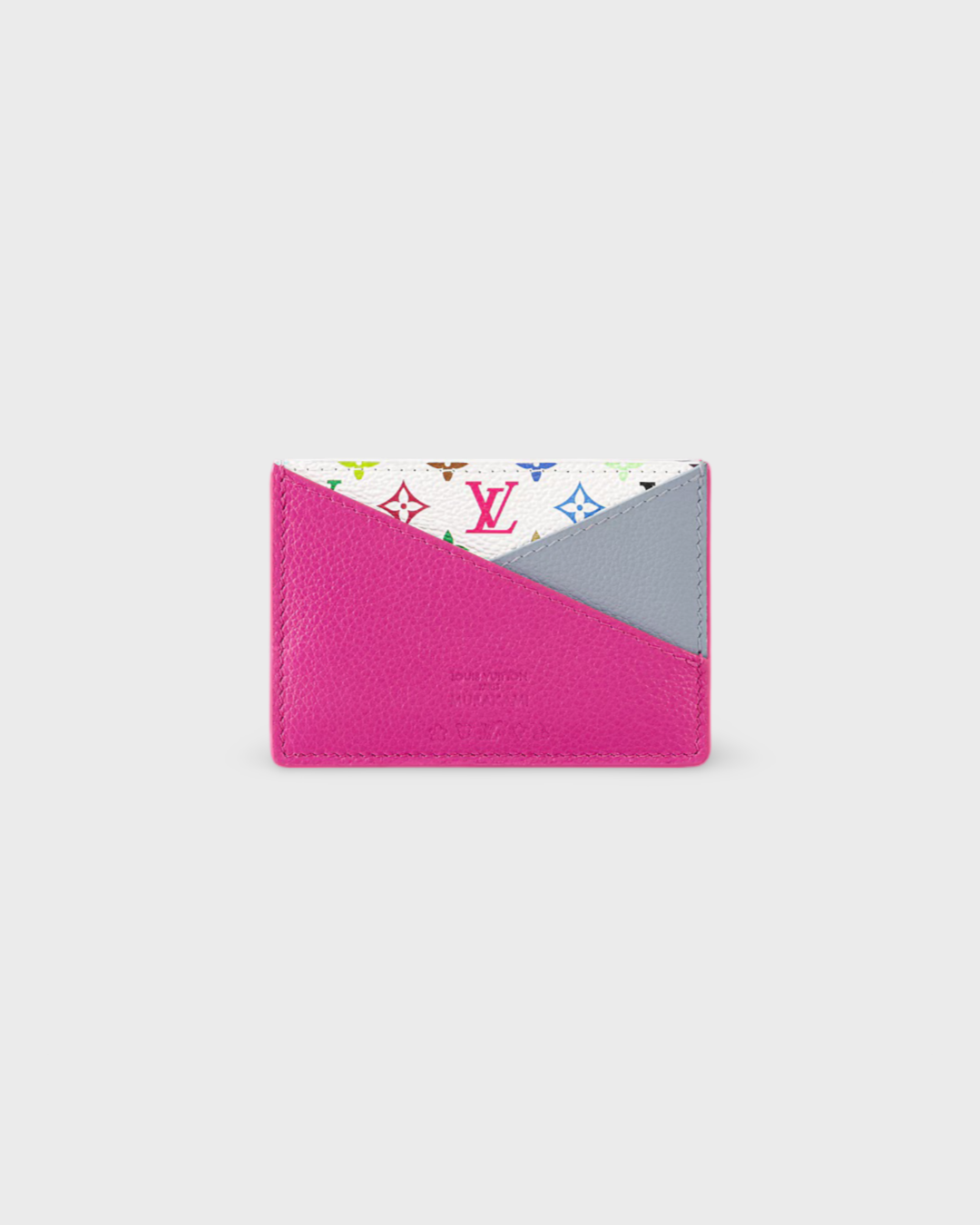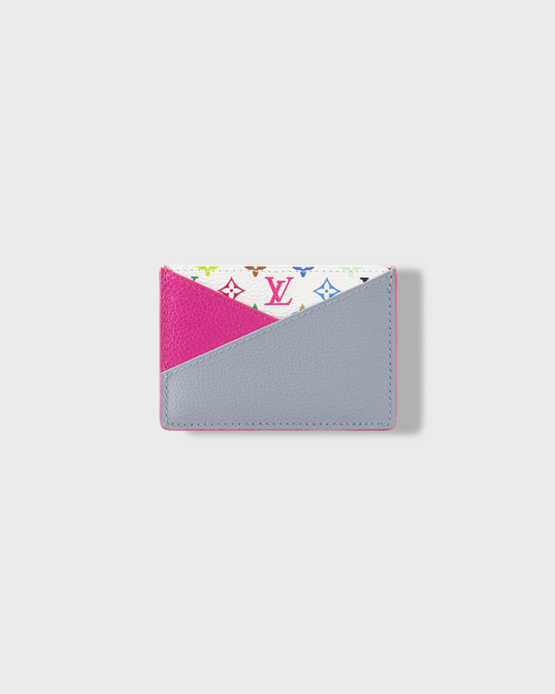 The exuberant rainbow palette of world-renowned Japanese artist Takashi Murakami refreshes this Criss-Cross card holder into a joyful daily statement. It is crafted in a compact, pocket-sized shape from colour-blocked cowhide leather with two diagonal flat pockets overlapping on the front, while multicoloured Monogram canvas completes the design with a vibrant signature accent from the re-edition of the Louis Vuitton x Murakami Collection.