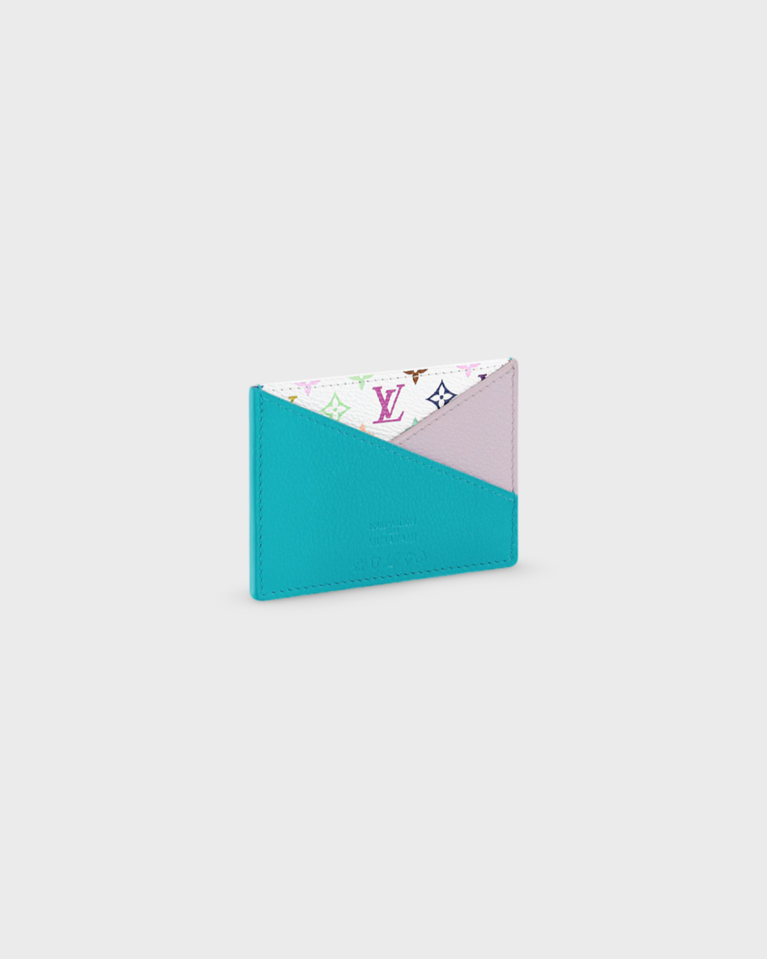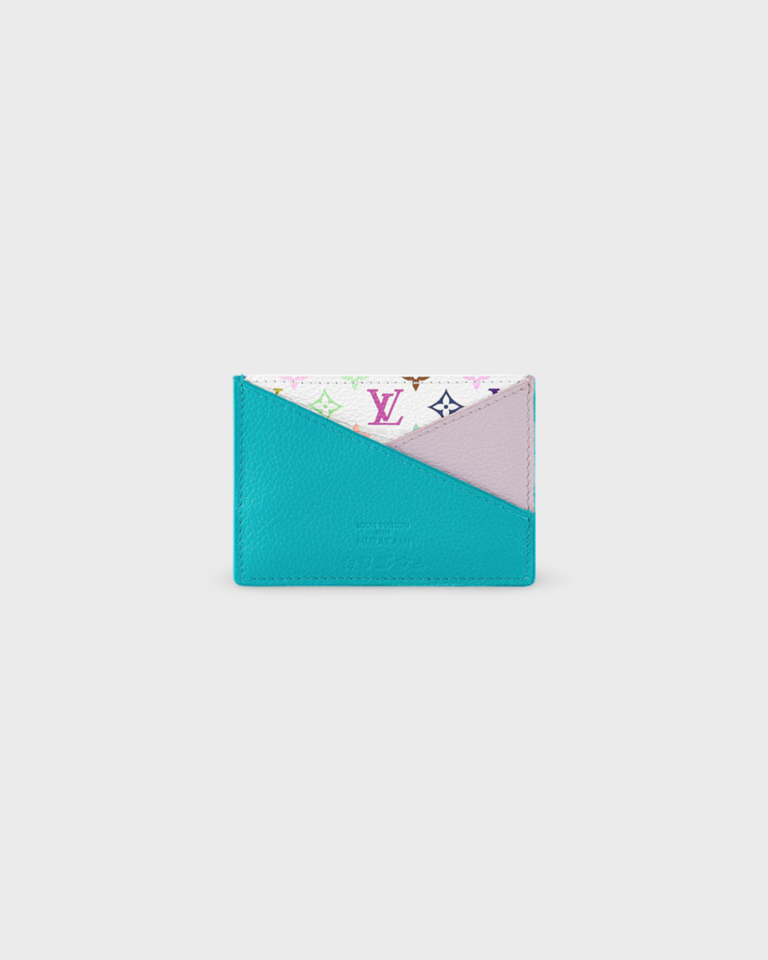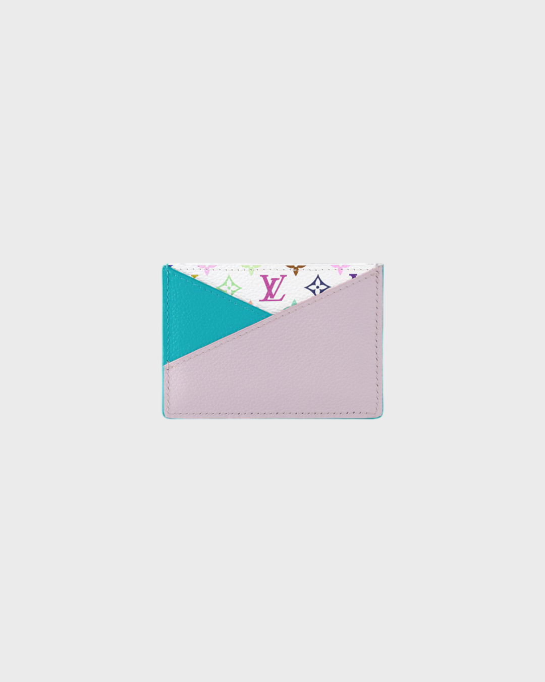 The exuberant rainbow palette of world-renowned Japanese artist Takashi Murakami refreshes this Criss-Cross card holder into a joyful daily statement. It is crafted in a compact, pocket-sized shape from colour-blocked cowhide leather with two diagonal flat pockets overlapping on the front, while multicoloured Monogram canvas completes the design with a vibrant signature accent from the re-edition of the Louis Vuitton x Murakami Collection.