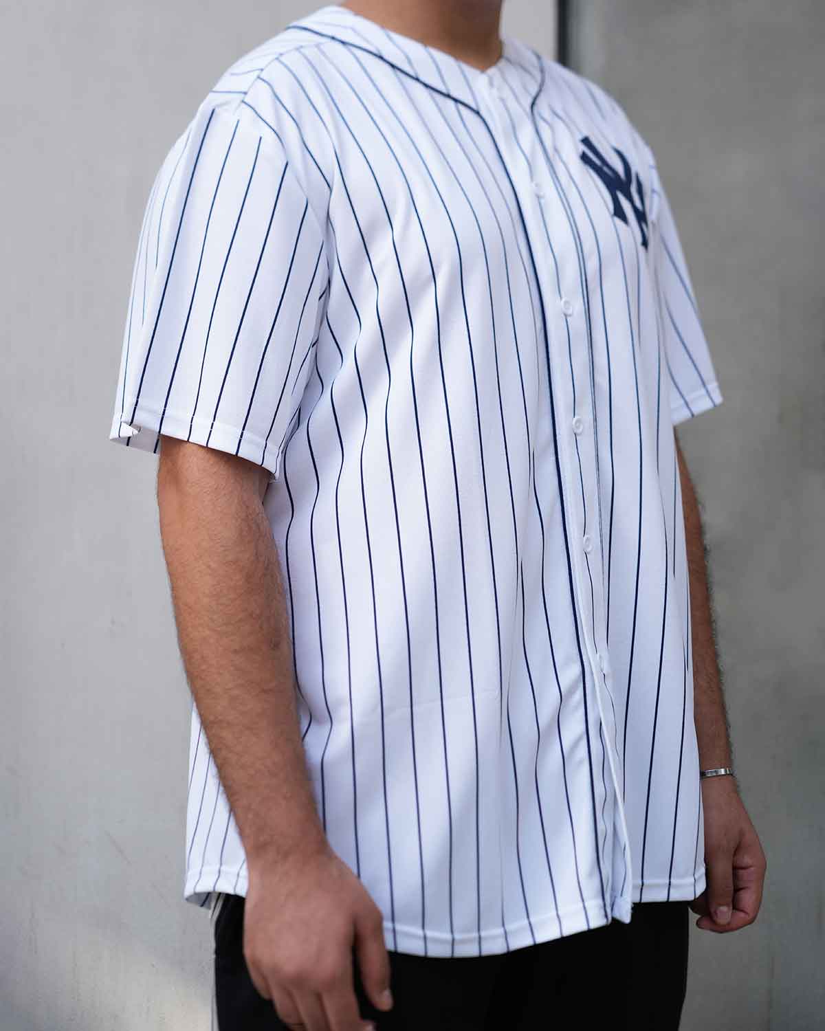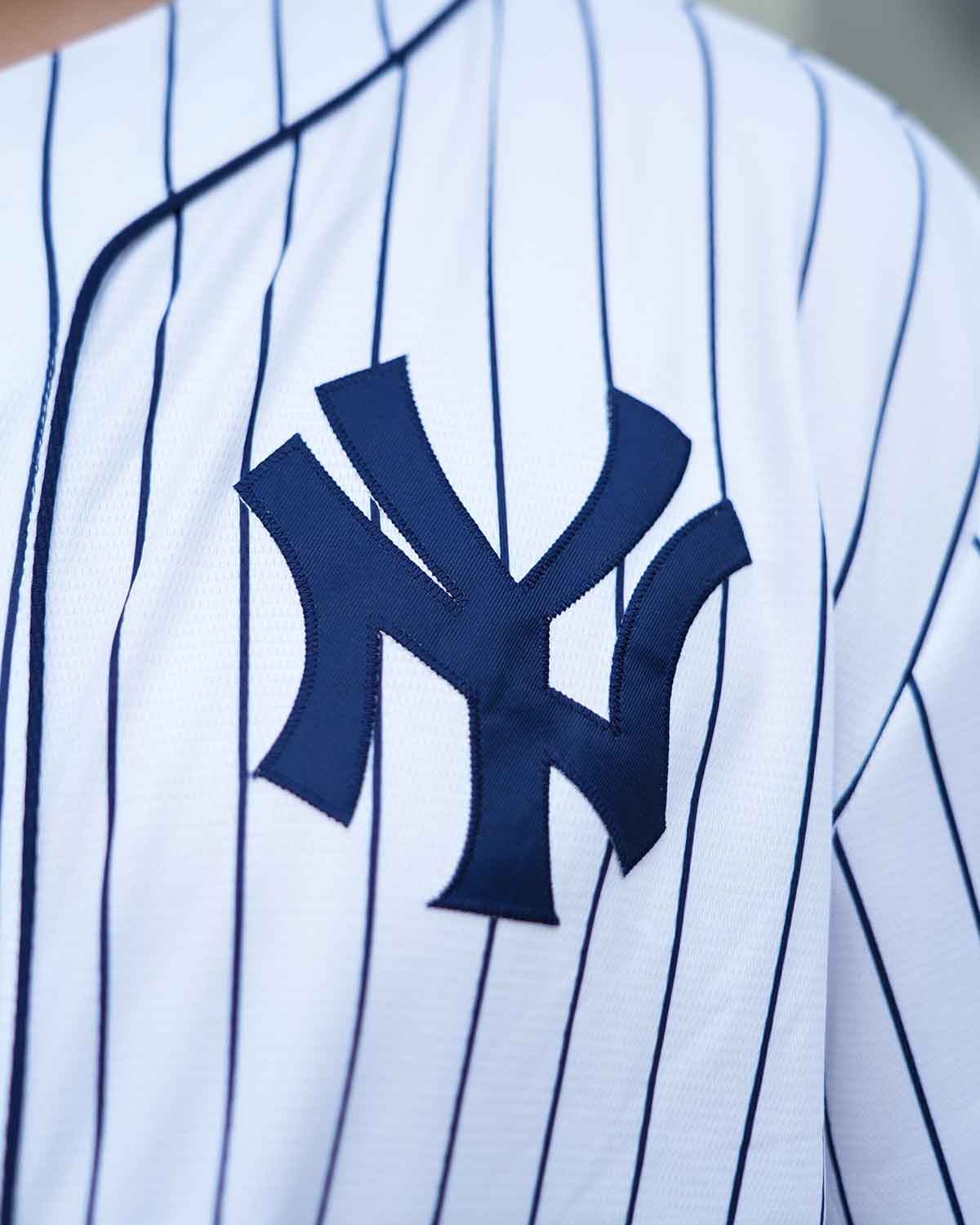 Classic Yankees home white with iconic navy pinstripes