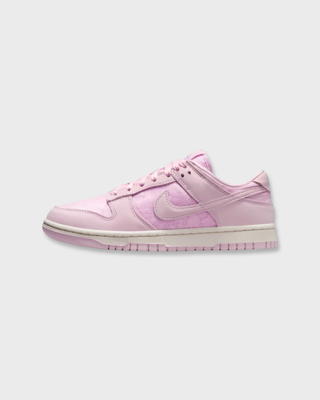 Nike Dunk Low "Floral Essence Pink" reimagines the classic silhouette with a soft botanical twist. This eye-catching pair features a pastel pink base layered with delicate floral embroidery and airy textures that channel springtime vibes all year round.