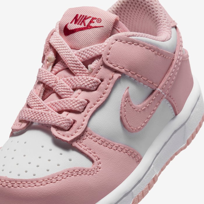 The Nike Dunk Low "White Pomegranate" TD & PS is a vibrant and durable sneaker designed for toddlers and Preschoolers, combining classic Dunk design elements with bright and playful colors.