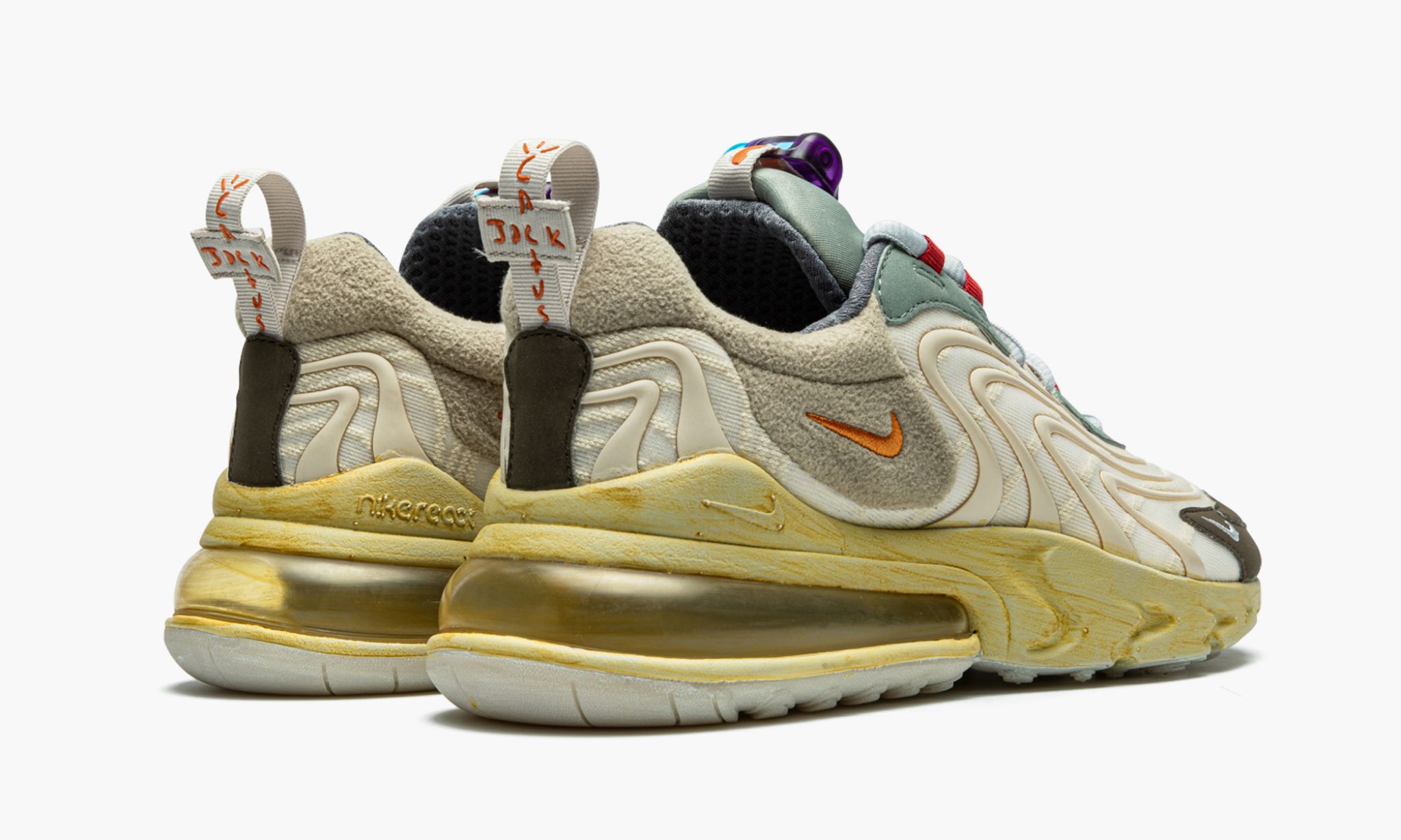 The Travis Scott x Nike Air Max 270 React “Cactus Trails” is another of the chart topping rapper's coveted releases with Nike. Having previously applied his formula of off-kilter Texas rodeo-meets-hip-hop aesthetics to the Air Force 1, Air Jordan 4, and other models in the past, Scott sets his sights on Nike’s ultra comfortable lifestyle shoe for Summer 2020. The upper features wavy cream synthetic overlays sitting atop the tonal mesh base. A brown nubuck toe cap with mini embroidered Swoosh branding adds contrast. Fuzzy light grey felt details the collar and mid-panel. Additional detailing includes Dark Haze eyelets, an embroidered orange Swoosh on the mid-panel, and a pre-yellowed React midsole for a decidedly vintage vibe. Nike’s large Air cushioning unit in the heel provides plenty of comfort for long walks on the trail… not that you’d actually wear this coveted shoe for any sort of hiking activity. Release date: May 29, 2020.