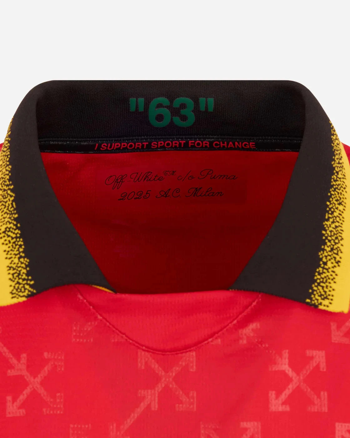 From 1963 to infinity. Co-created by PUMA, AC Milan, and Off-White™, this jersey channels the spirit of 1963 – the year of AC Milan’s first European Cup title and, off the pitch, a world inspired by dreams of progress. Two alternative colorways celebrate the power of unity, reimagined with signature Off-White™ touches as a reminder that change is both unstoppable and never finished. Whatever you dream of, dream on.