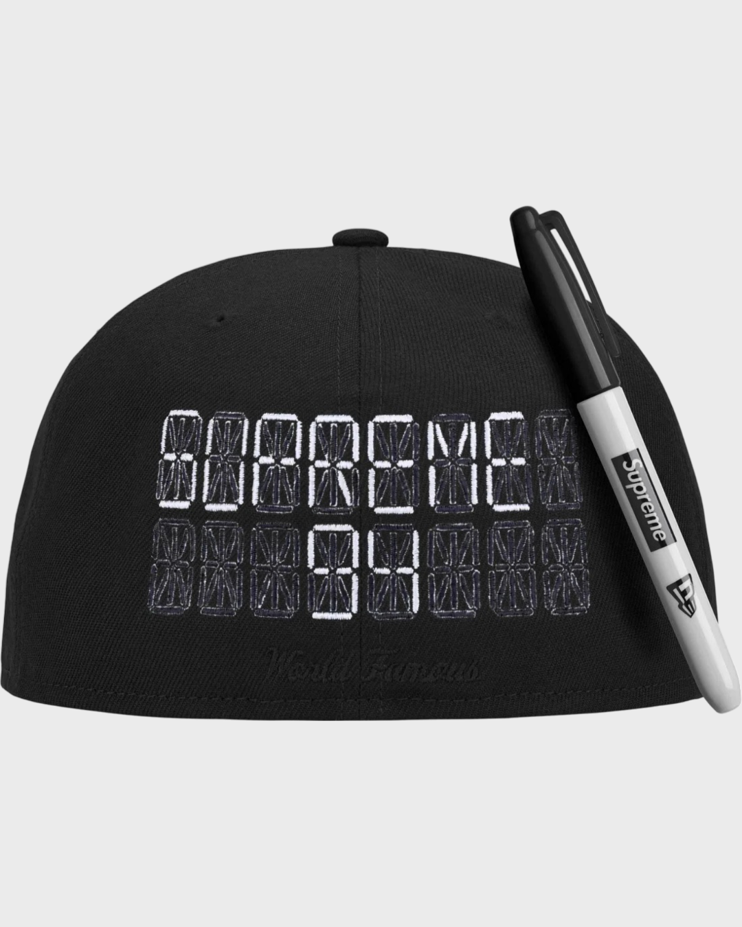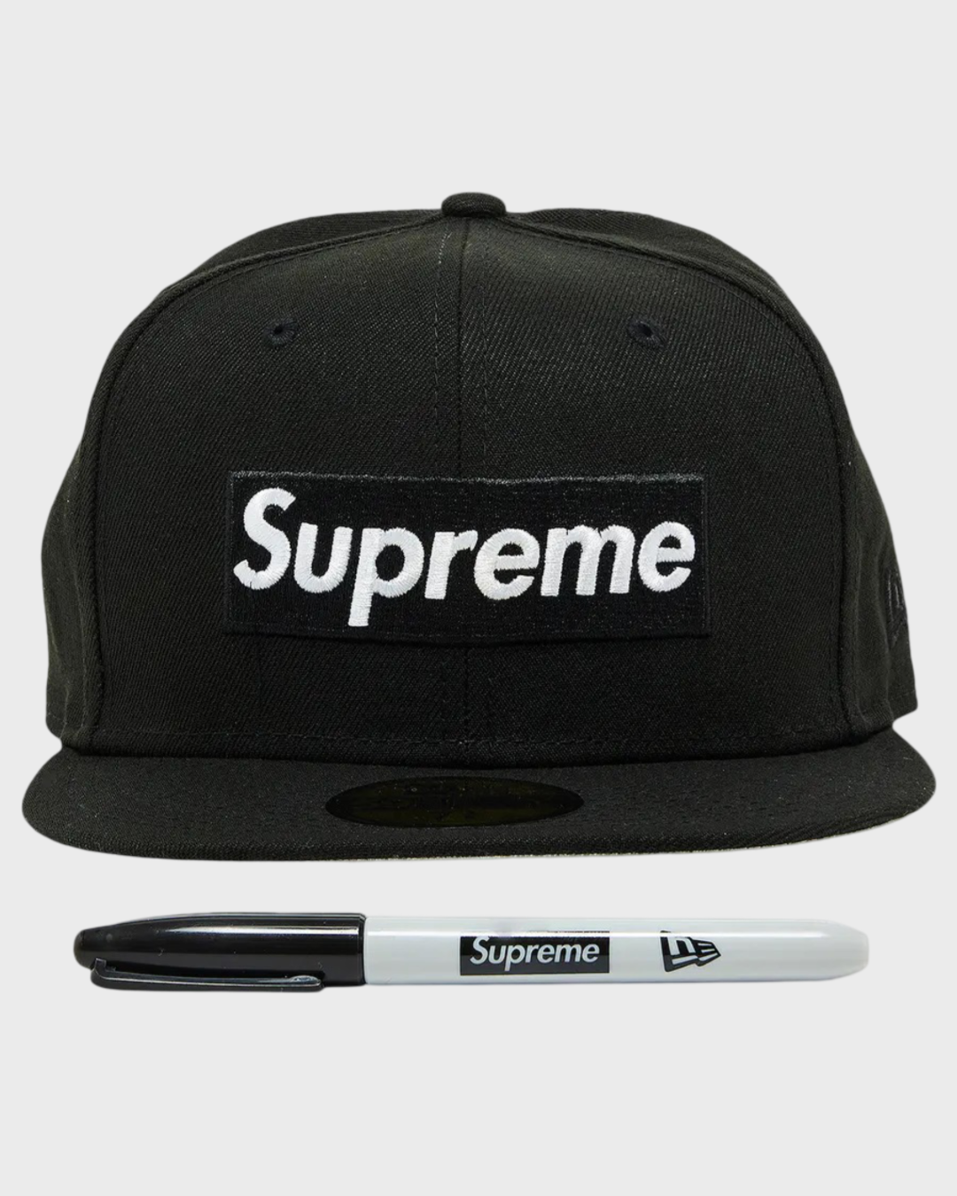 The Supreme Sharpie Box Logo New Era hat was released as part of Supreme’s Spring/Summer 2024 collection on March 14, 2024. It is a poly New Era 59FIFTY fitted baseball cap featuring embroidered logos on the front, sides, and back. Each hat comes with a tonal Sharpie marker included.