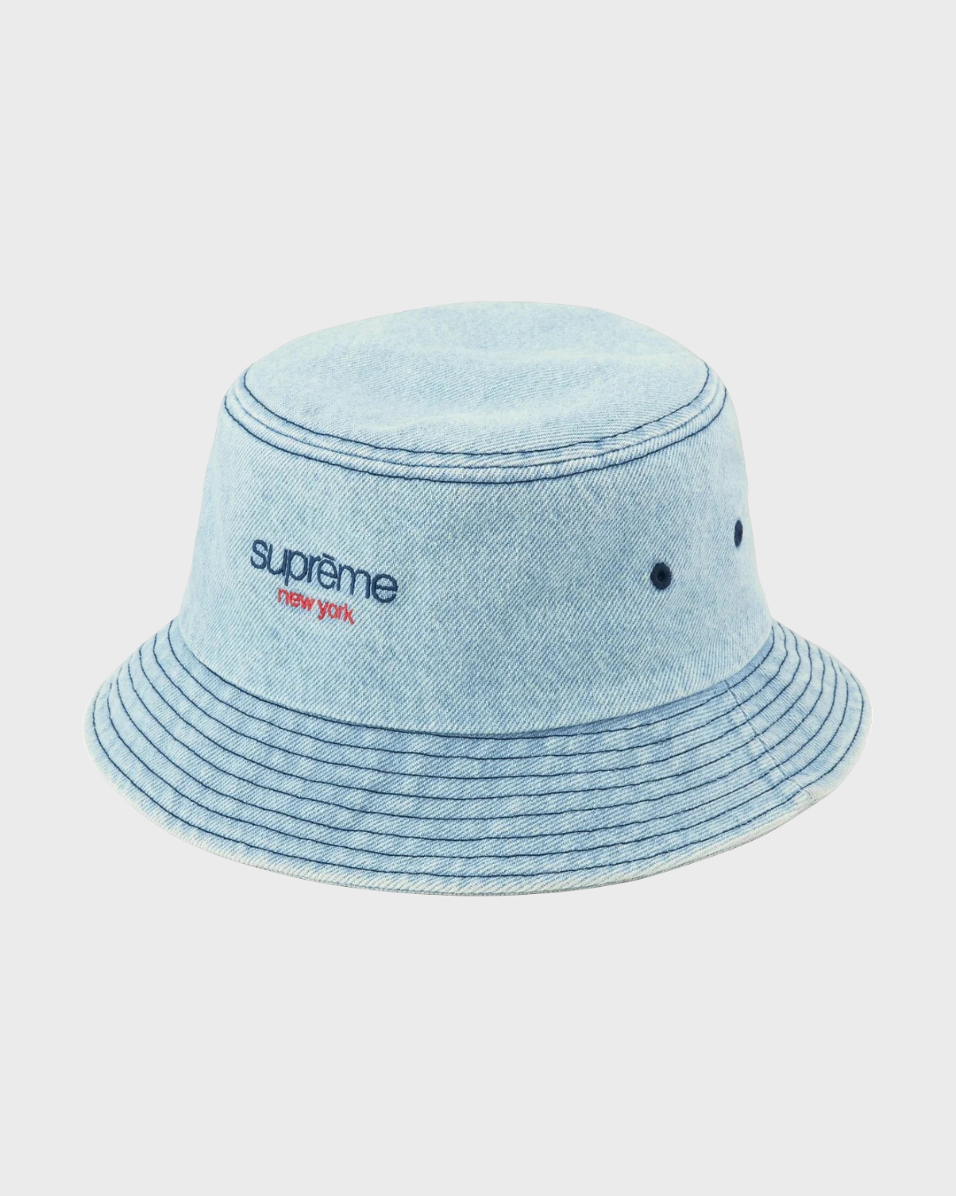 All cotton 13 oz. denim crusher with embroidered logo on front.